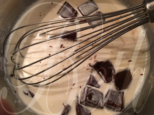 leve ao lume as natas a ferver, retire do lume, adicione o chocolate, mechendo sempre até derreter completamente pode também adicionar uma colher de sobremessa de margarina.