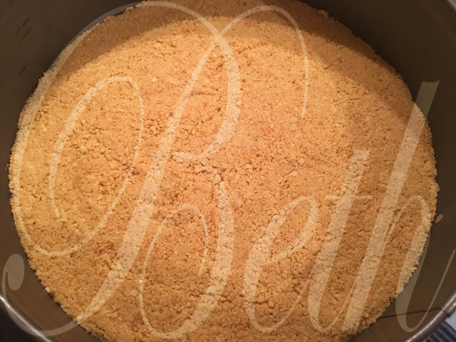 Triturar os biscoitos no robo, verta dentro de um recipiente a dicione a margarina, envolva bem e forre o fundo da forma com ajuda de uma espatula, reserve no frigorifico.