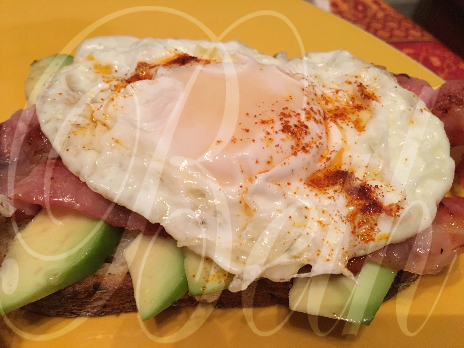 Faite revenir le bacon dans un poêle, déposer sur l'avocat, suivi de l'oeuf.