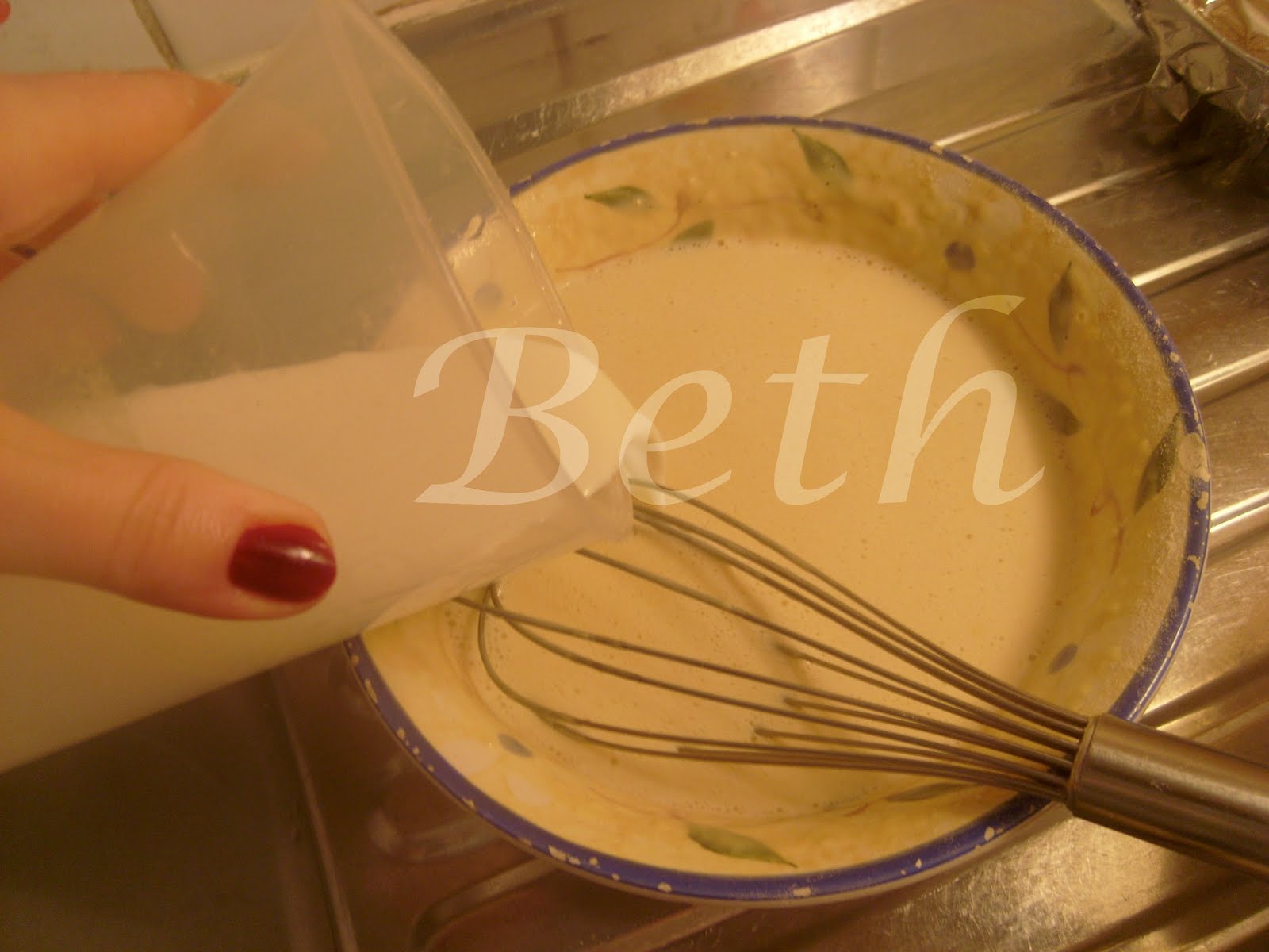 Fouetter les œufs avec la farine, verser le lait peu à peu et ajoutez le thon, coquillettes le jambon, chorizo espagnol et les tomates, salez, poivrez parsemer de persil.