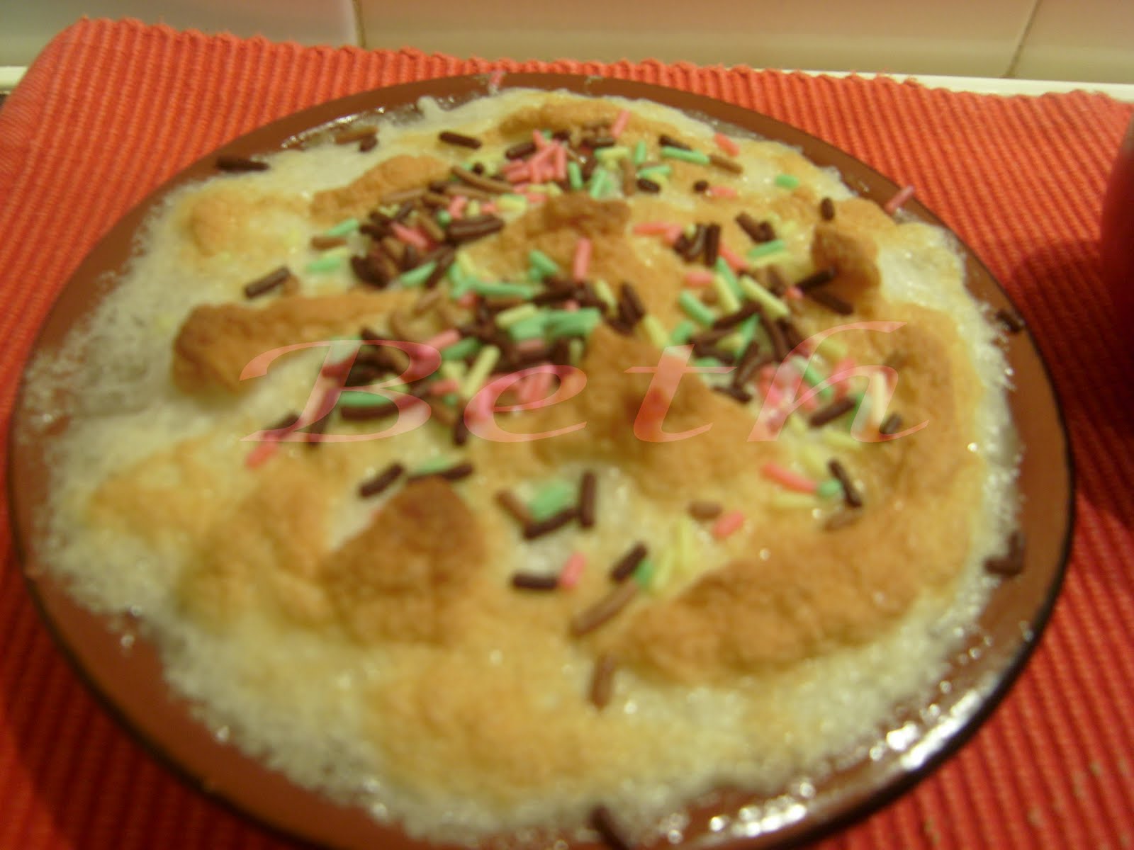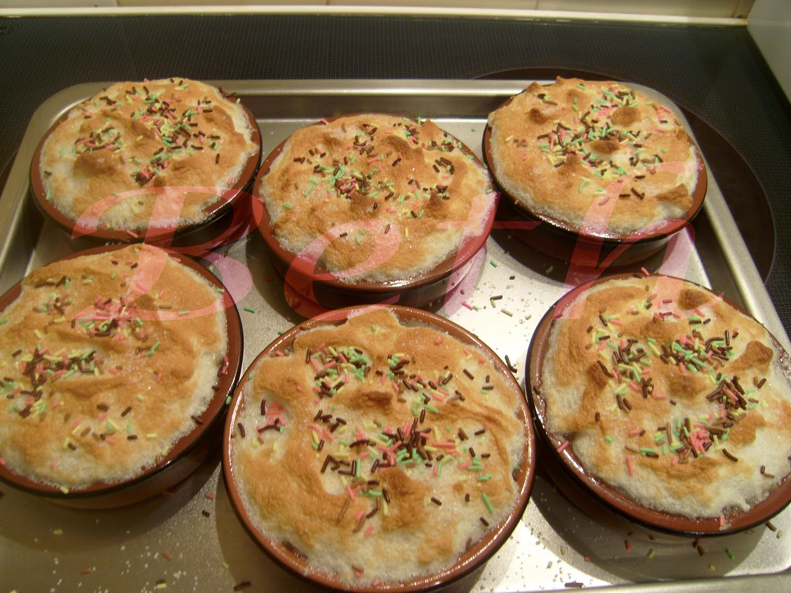Saupoudrez de sucre et porter au four en position gril, juste le temps de dorée, et quelques minutes avant de retirer j’ai ajouté du vermicelle arc-en-ciel, pour décorer.