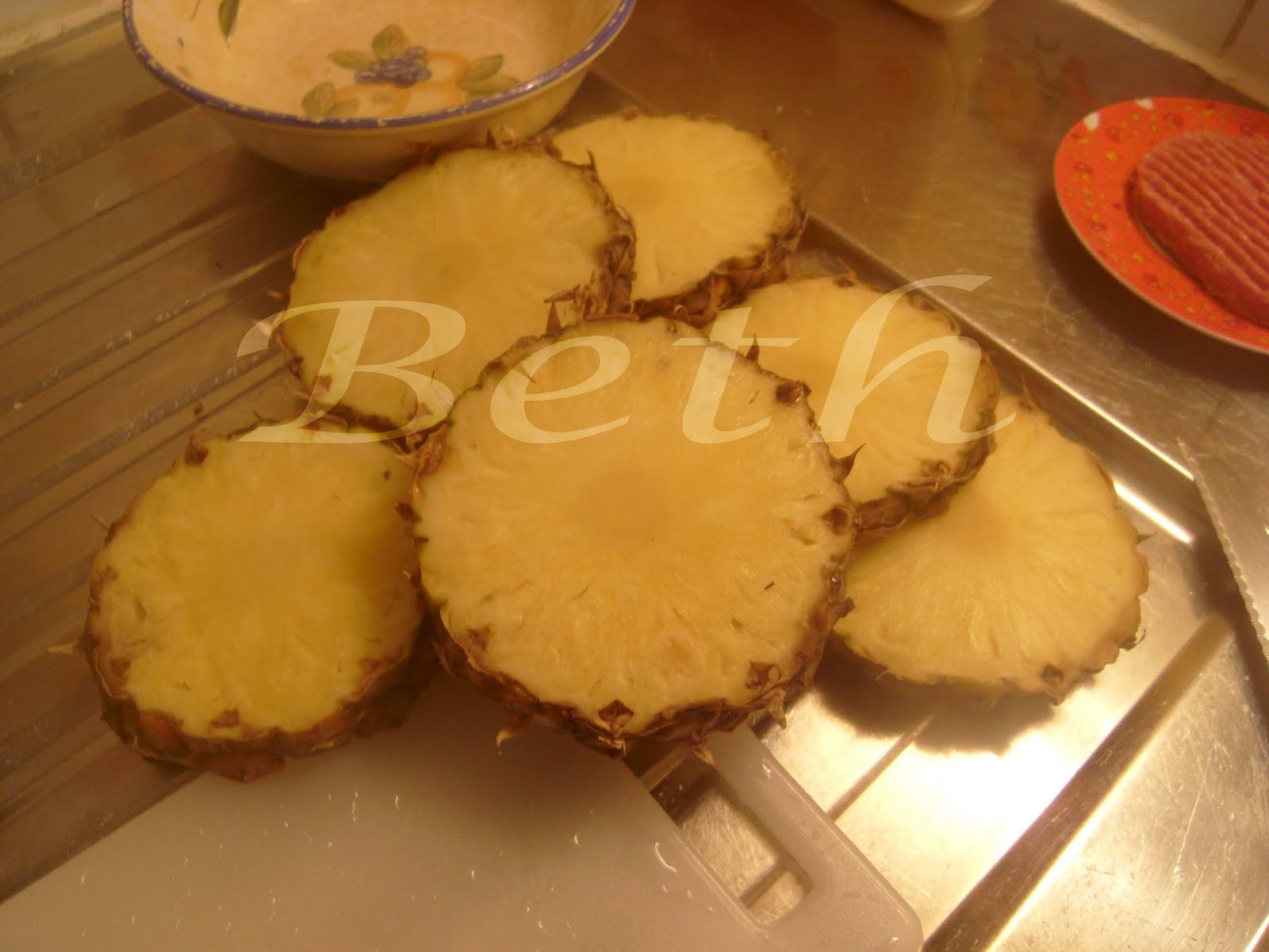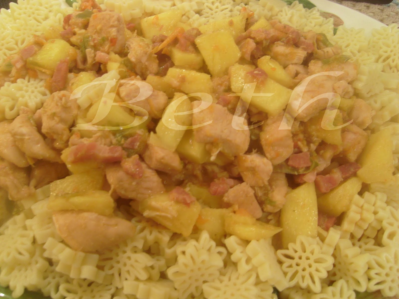Este prato é uma simples invenção minha, pois tinha uma ananas em casa que estava a ficar um pouco passada do tempo, então para não estragar nem deitar fora , pois não estàmos em tempos de despêrdicios muito menos com os alimentos, decidi então ir fazendo o que me passava pela à cabeça,tinha peitos de frango , pimentos , bacon , dai com estes ingredientes me deixei levar pela magia da mistura e da invenção.
