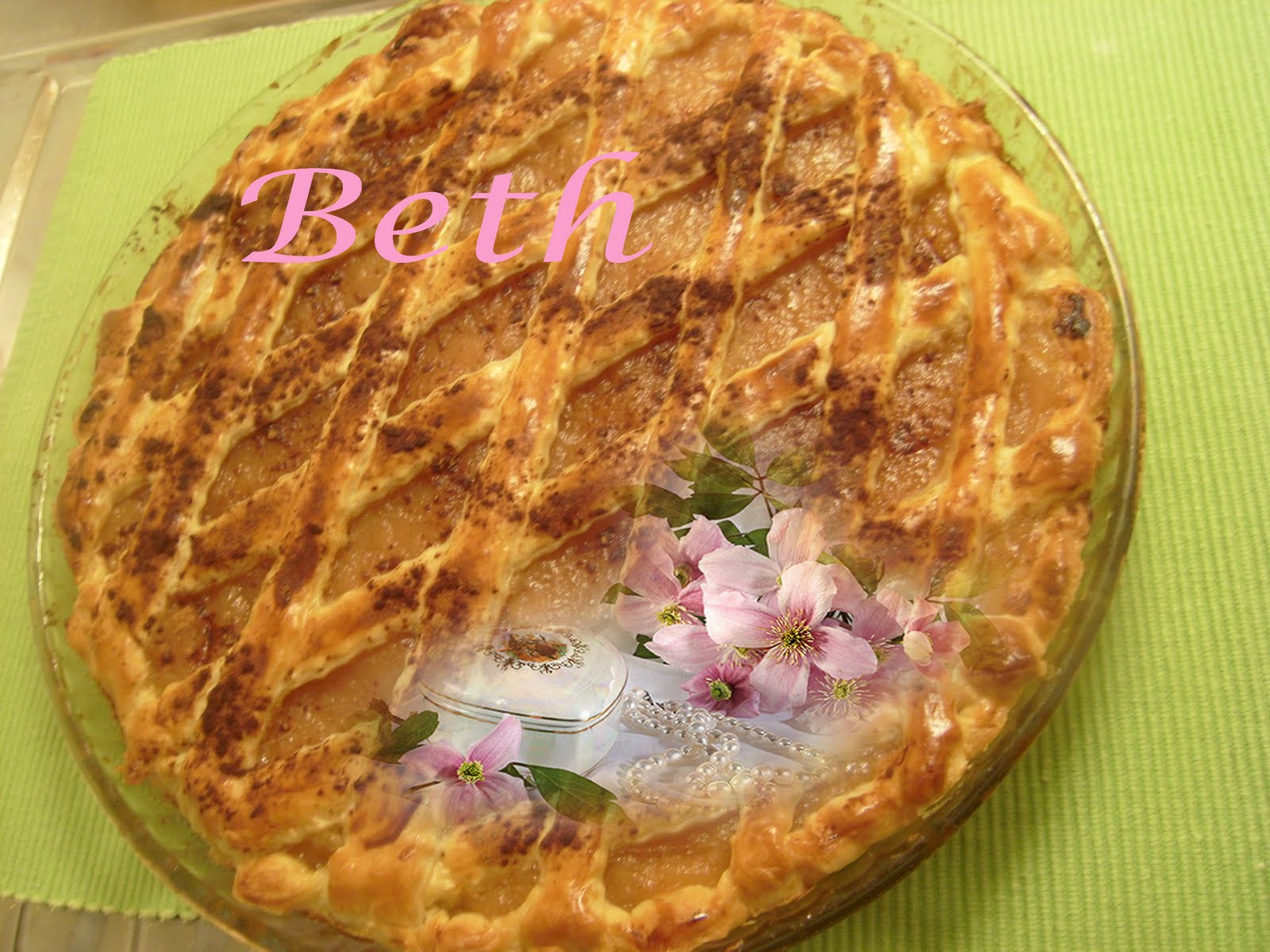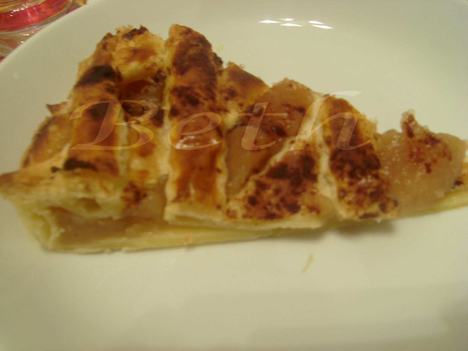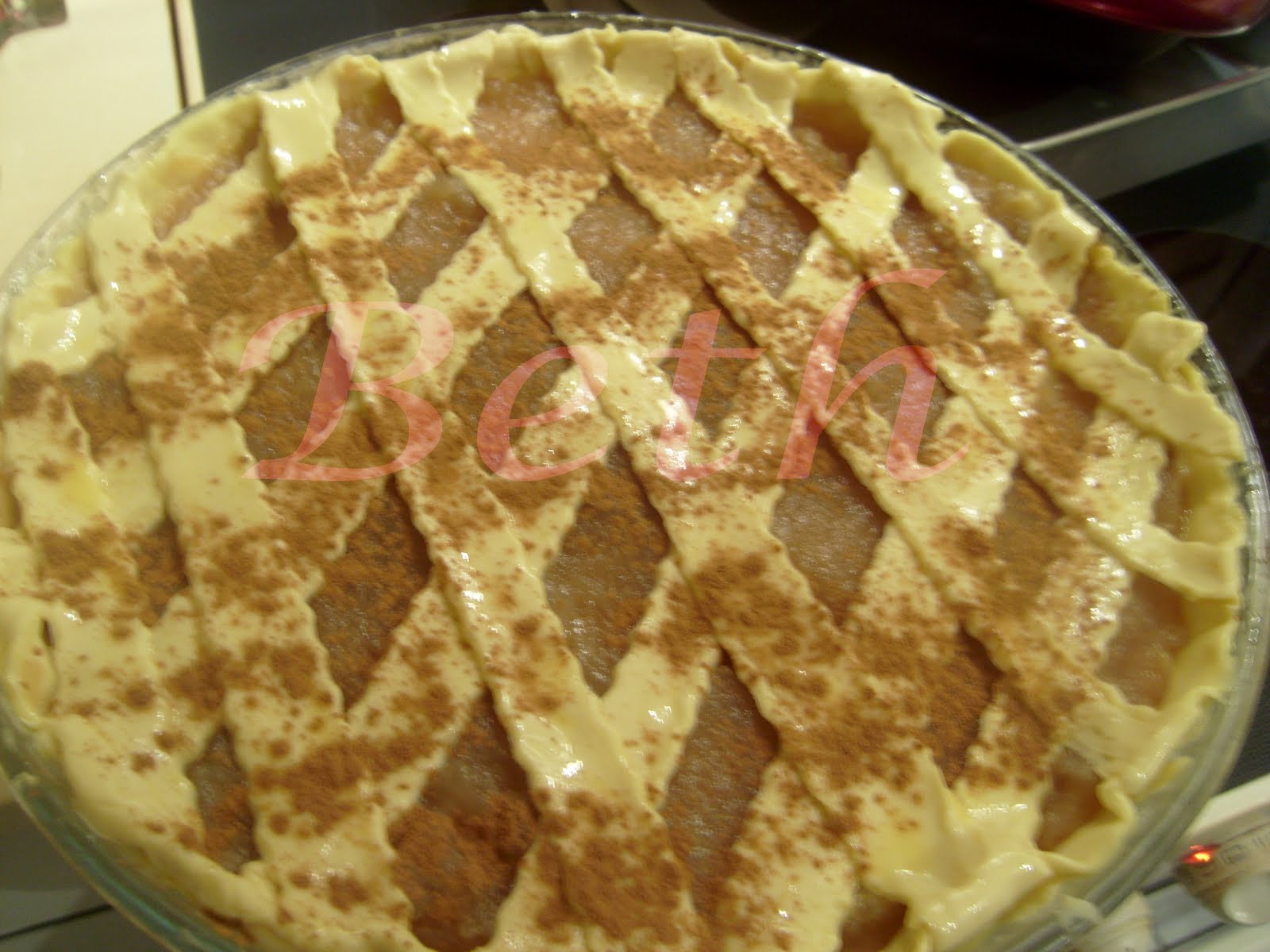 Placer une par une sur la tarte en lui donnant la forme de losange (comme dans la photo).