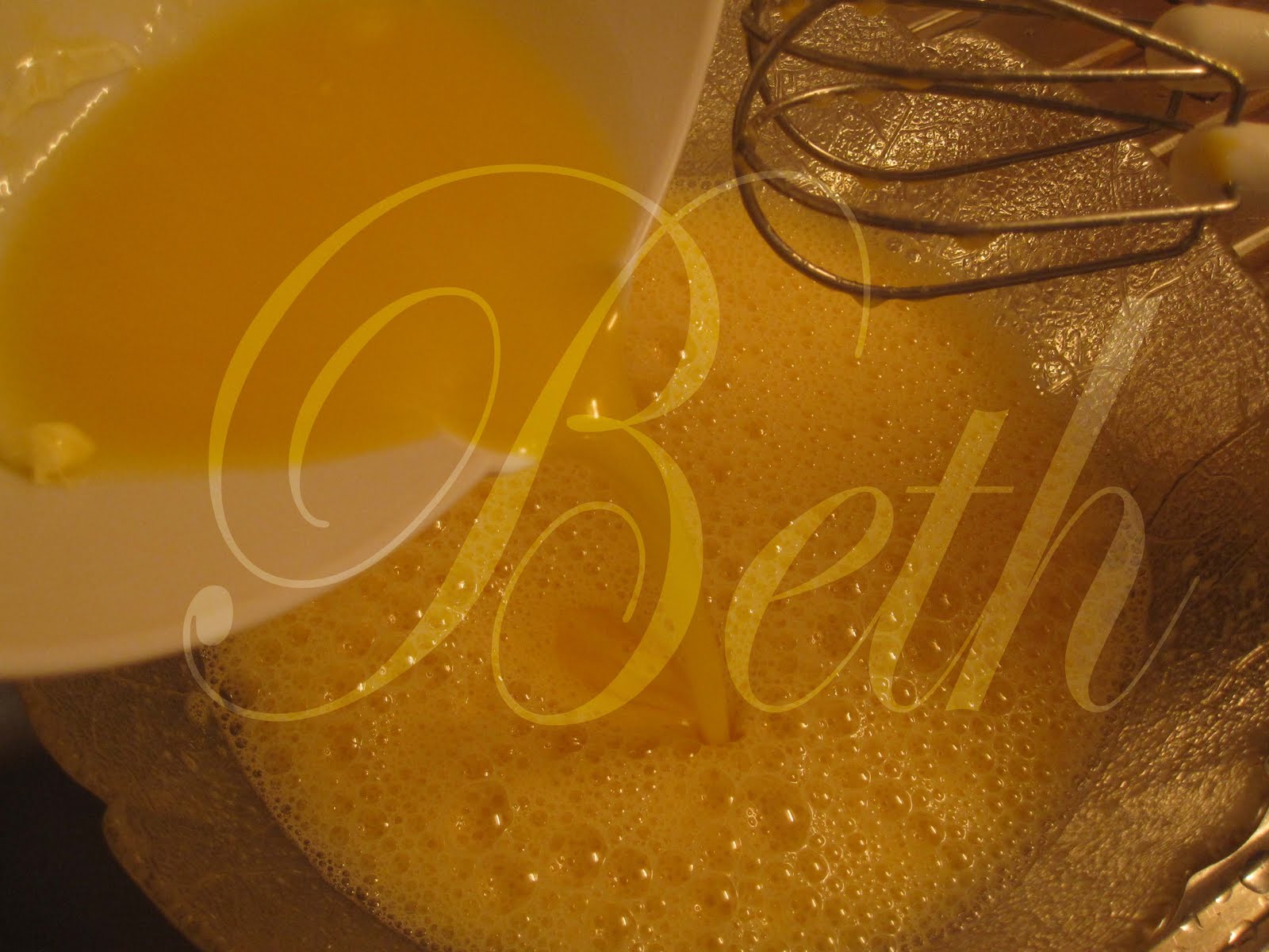 Additionner le beurre fondu e les yourtes, mélanger à nouveau et ajouter de suite la farine et la levure sans arrêter de battre le mélanger avec le batteur.