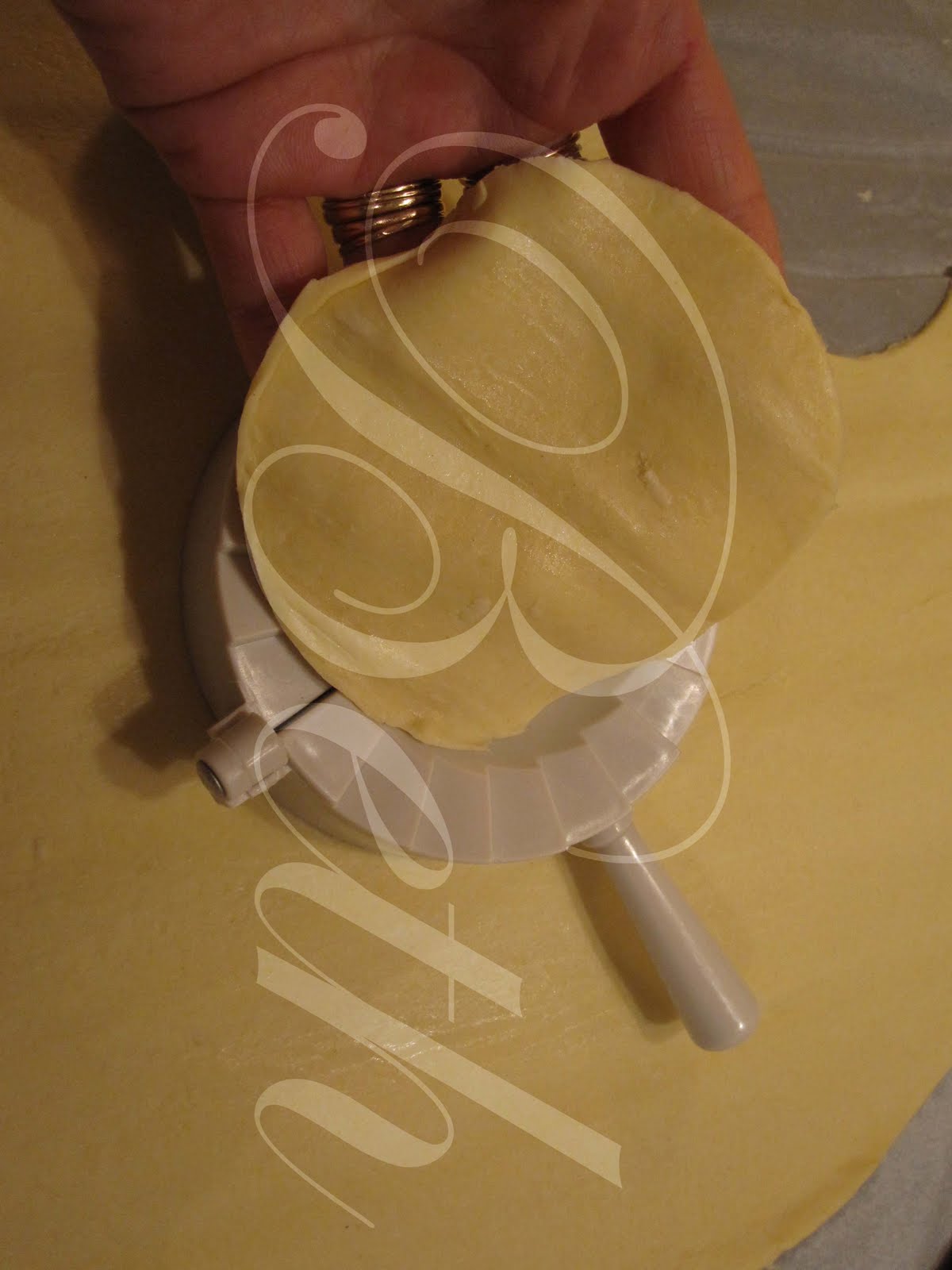 A laide de ces petits ustensiles (si vous en posséder) ou alors a laide d’un verre couper des petit ronds de pâtes, avec votre doigt mouillé de bord de la pâte pour mieux fermer, placer la confiture de framboise à l’intérieur pas beaucoup si non ils ouvrent, juste une cuillère à dessert.