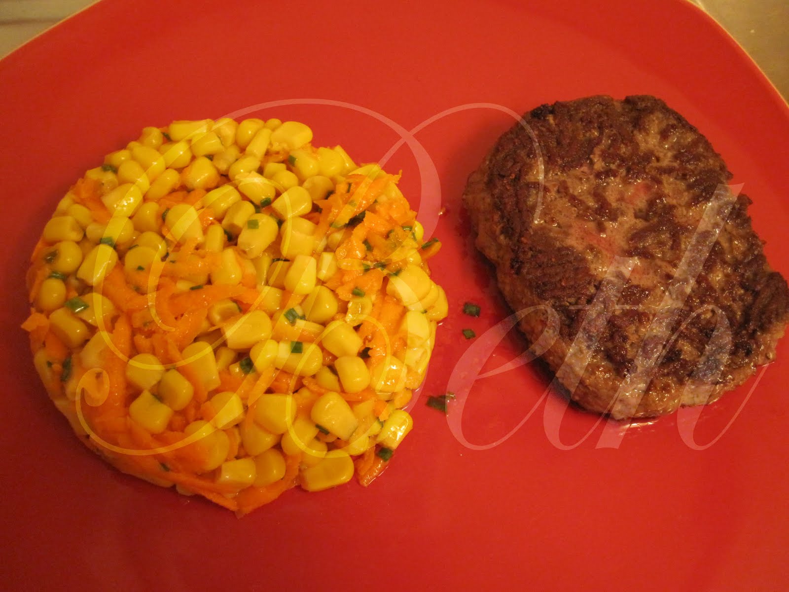 Dans un saladier, versez le maïs, la carotte râpée et la ciboulette, versez la sauce vinaigrette par dessus, mélanger bien et réserver.