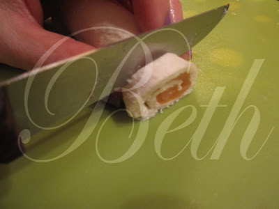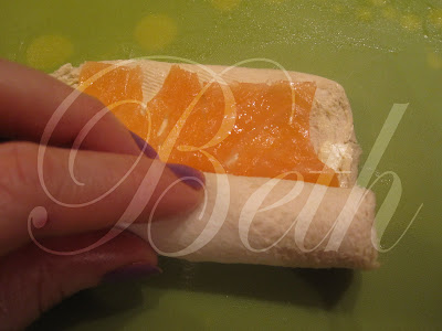 Enrole o pão de forma , molha com o dedo a borda do pão para que fique bém unido.