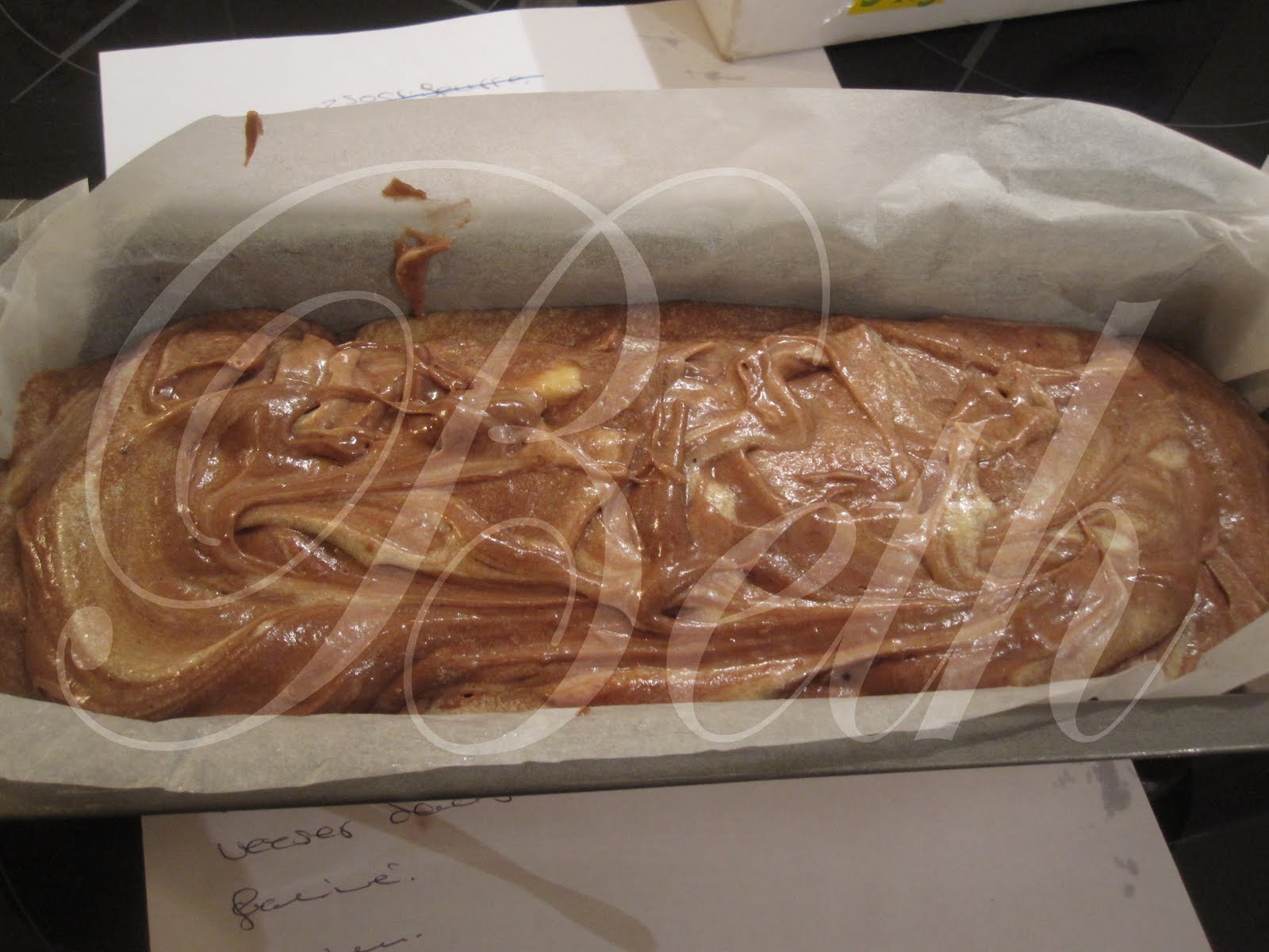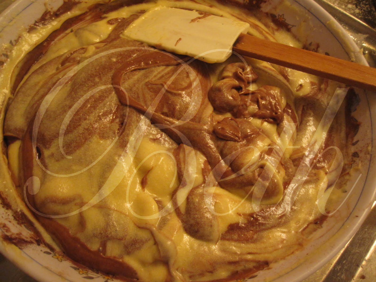 Terminez en mélangeant les deux préparations, de manière à réaliser un aspect marbré, pour cela mélangez grossièrement à la spatule.