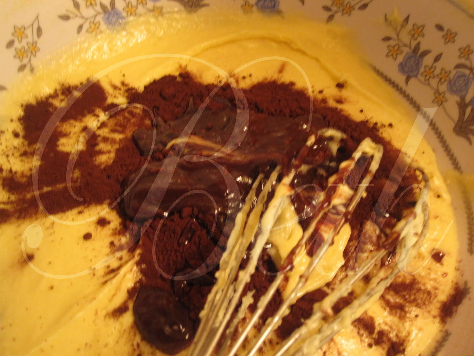 (Au bain-marie) et le cacao en poudre, puis mélangez.