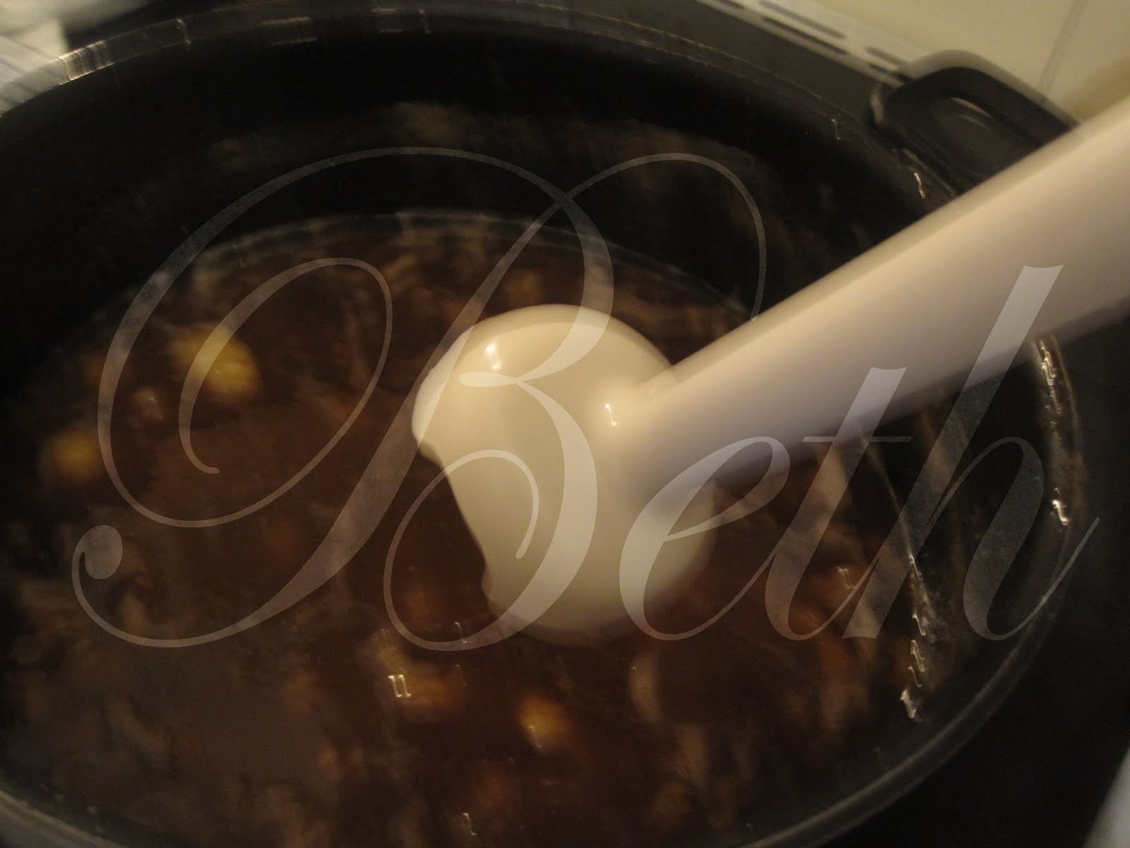 Acabando este tempo, passe tudo com a varinha magica (ver foto) até ficar um puré bonito sem pedaços.