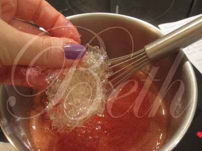 Num tachinho aqueça metade deste puré de morangos, so deixar amornar.Escorra as folhas de gelatina e incorpore-as ao puré de morangos jà fora du lume.