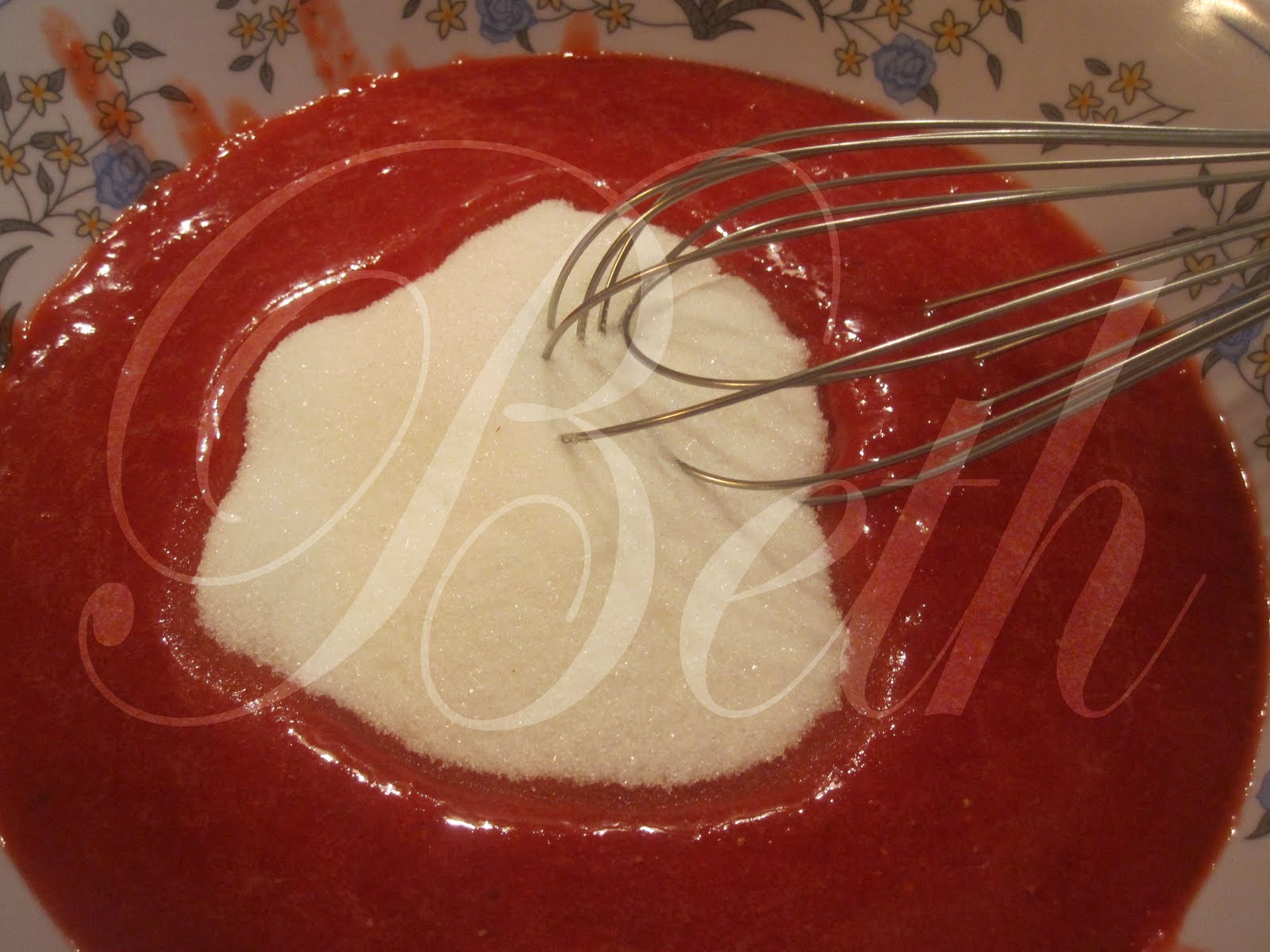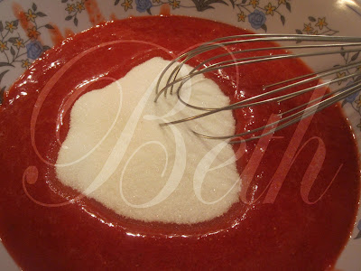 Misture o açucar ao puré envolvendo muito bem com uma colher de varas.