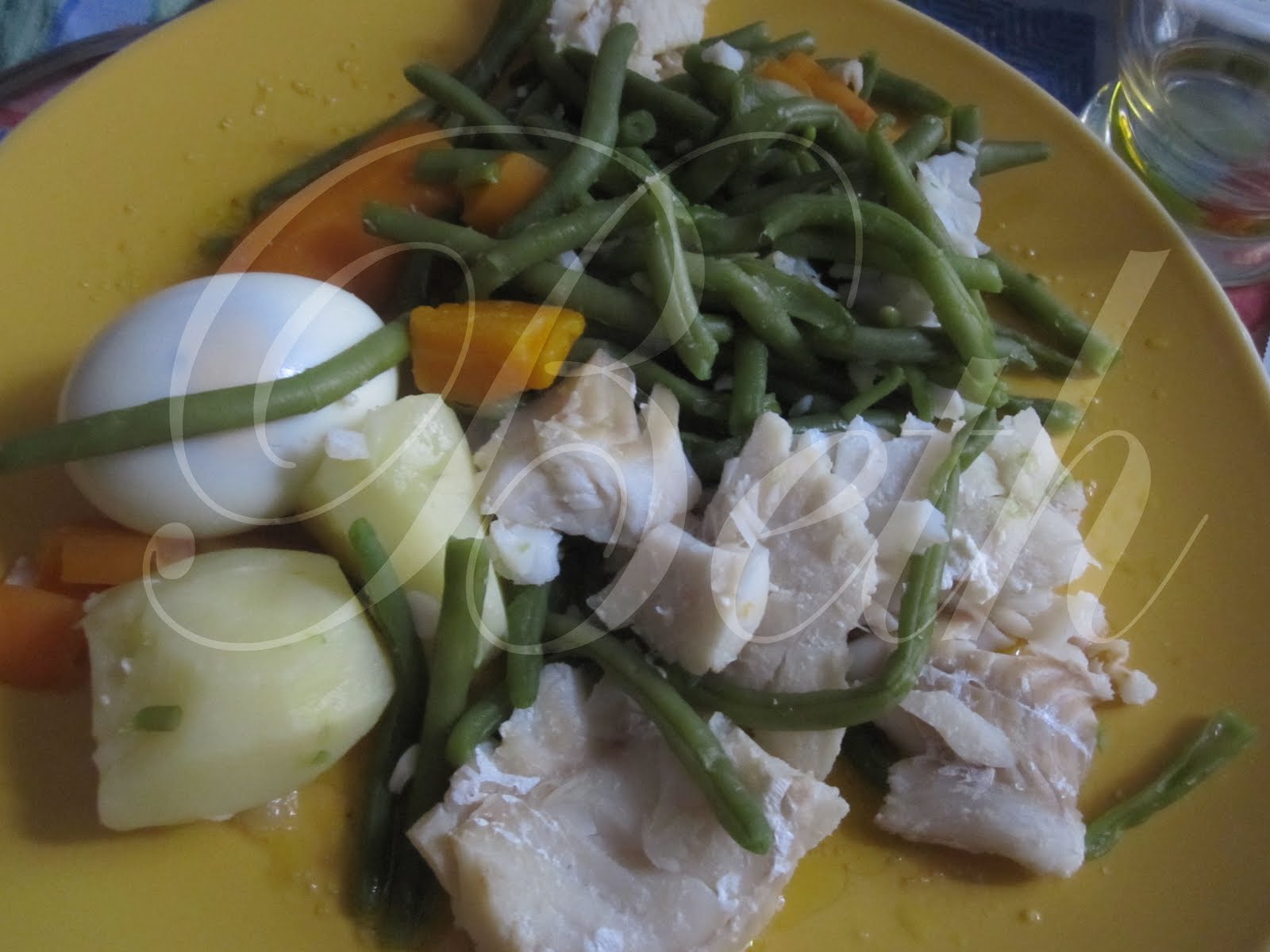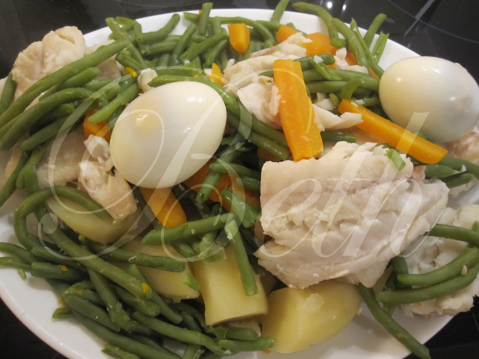 eu adoro de vez em quanto comer um cozidinho simples, com bacalhau ou filetes de peixe acompanhado com legumes, pois aqui tem que ser mesmo com feijão verde congelado, no quintal não à couves, nem penca, nem nabiças, infelizmente planto todos os anos mas não nascem ehehehehe