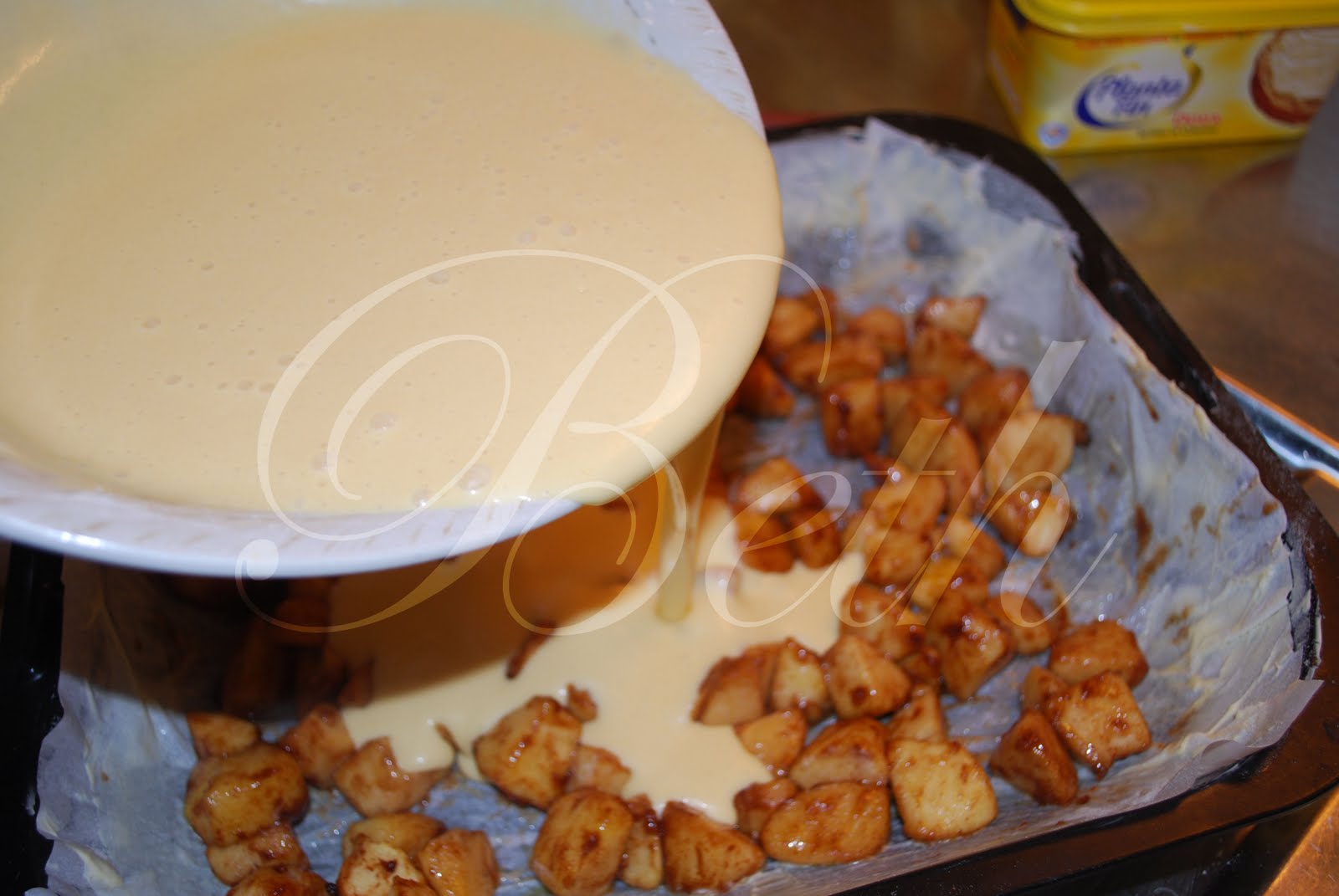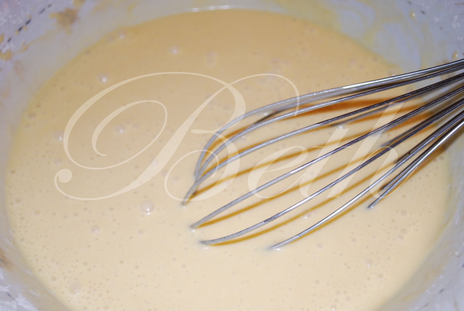 junte a margarina derretida à preparação dos ovos....