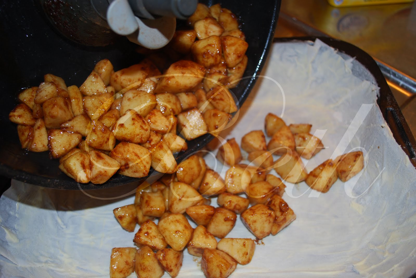 -5 maçãs, descascadas e limpas, courtadas aos cubos