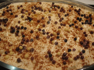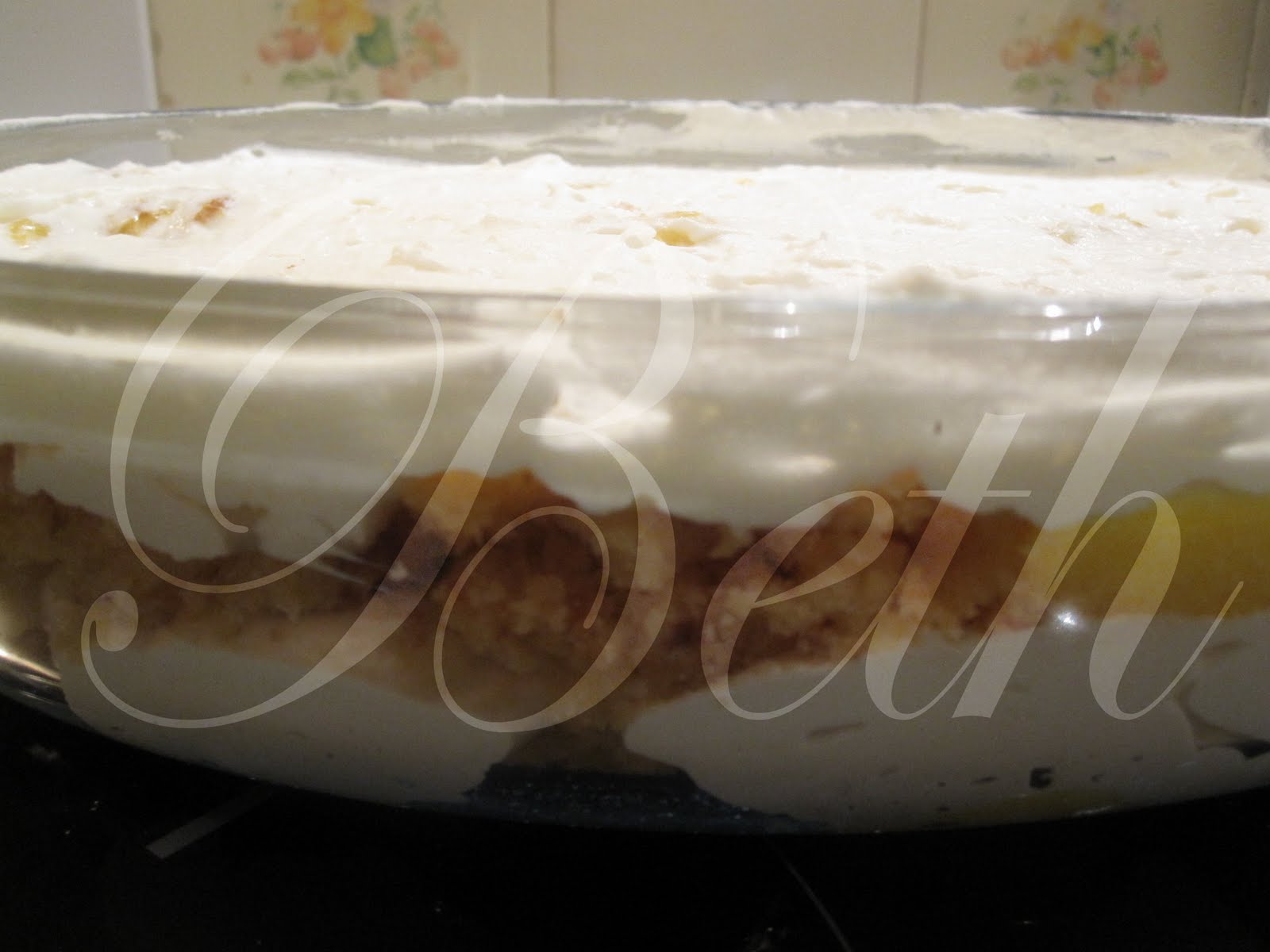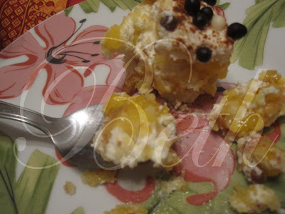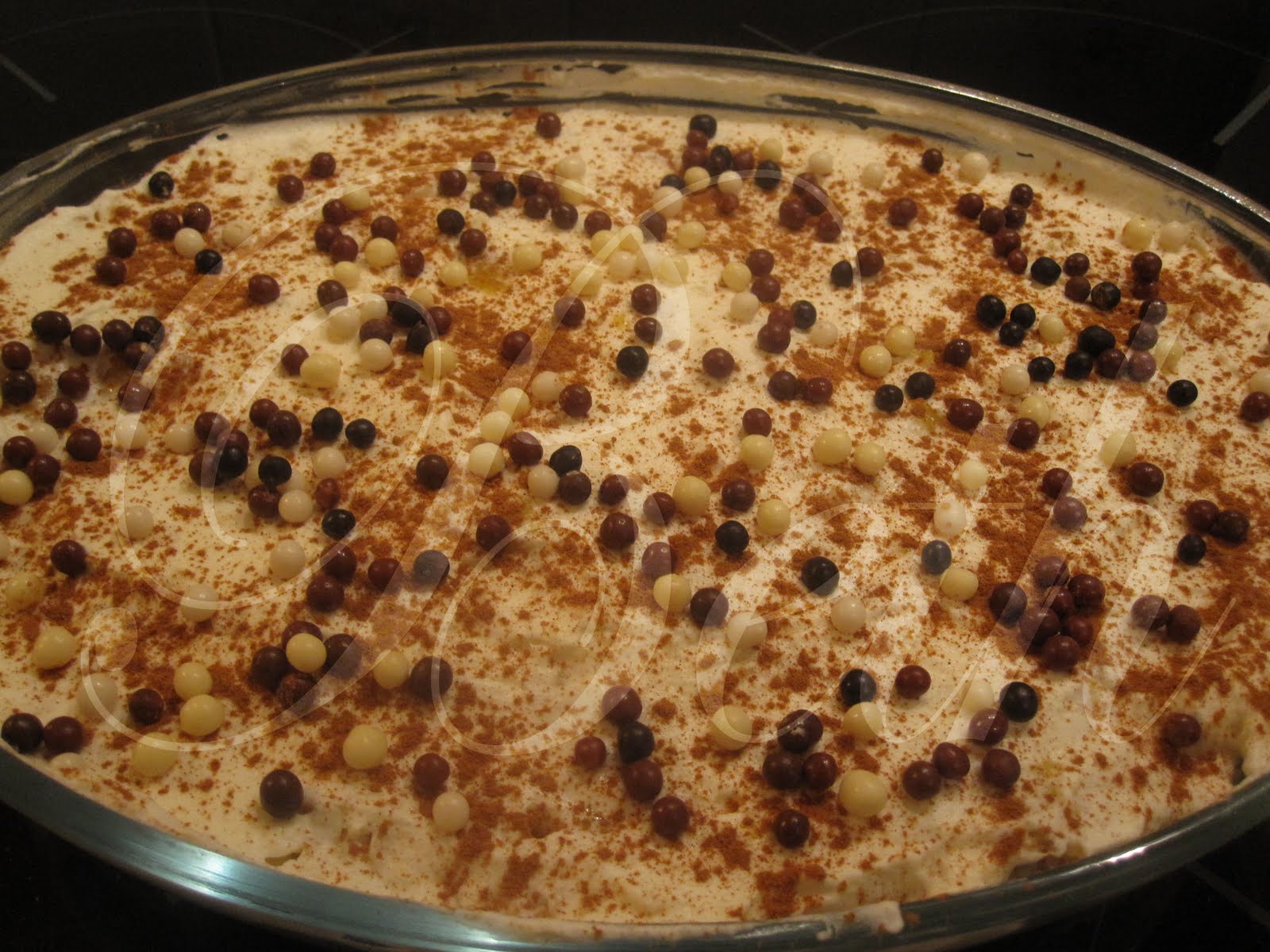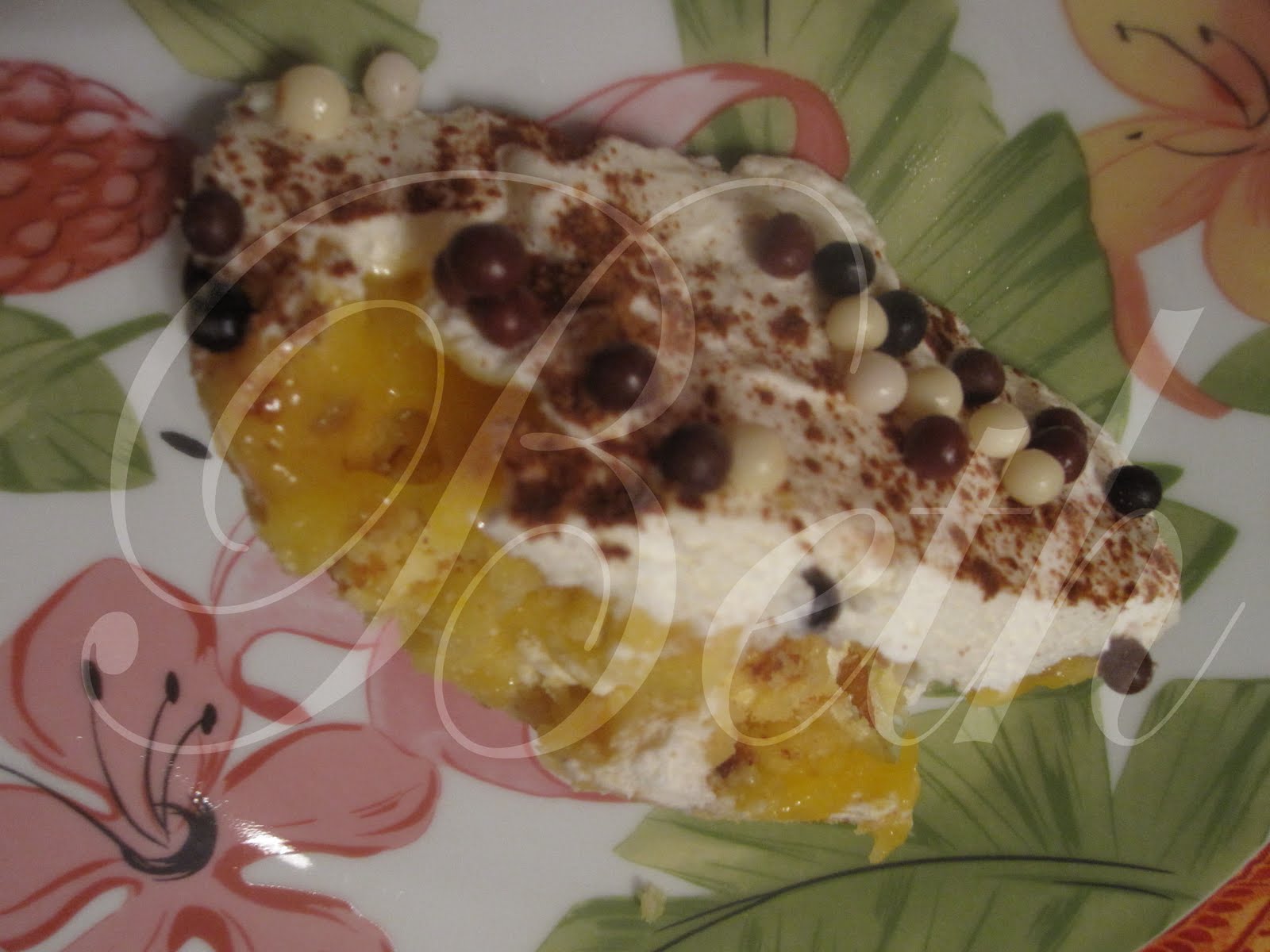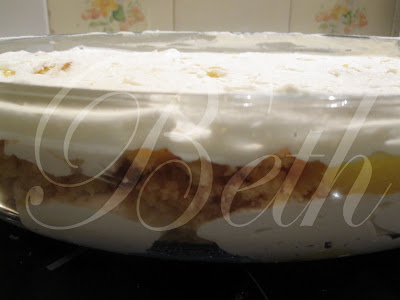 Disponha o bolo no fundo do prato em pirex, alternando com o doce de ovos e as natas.