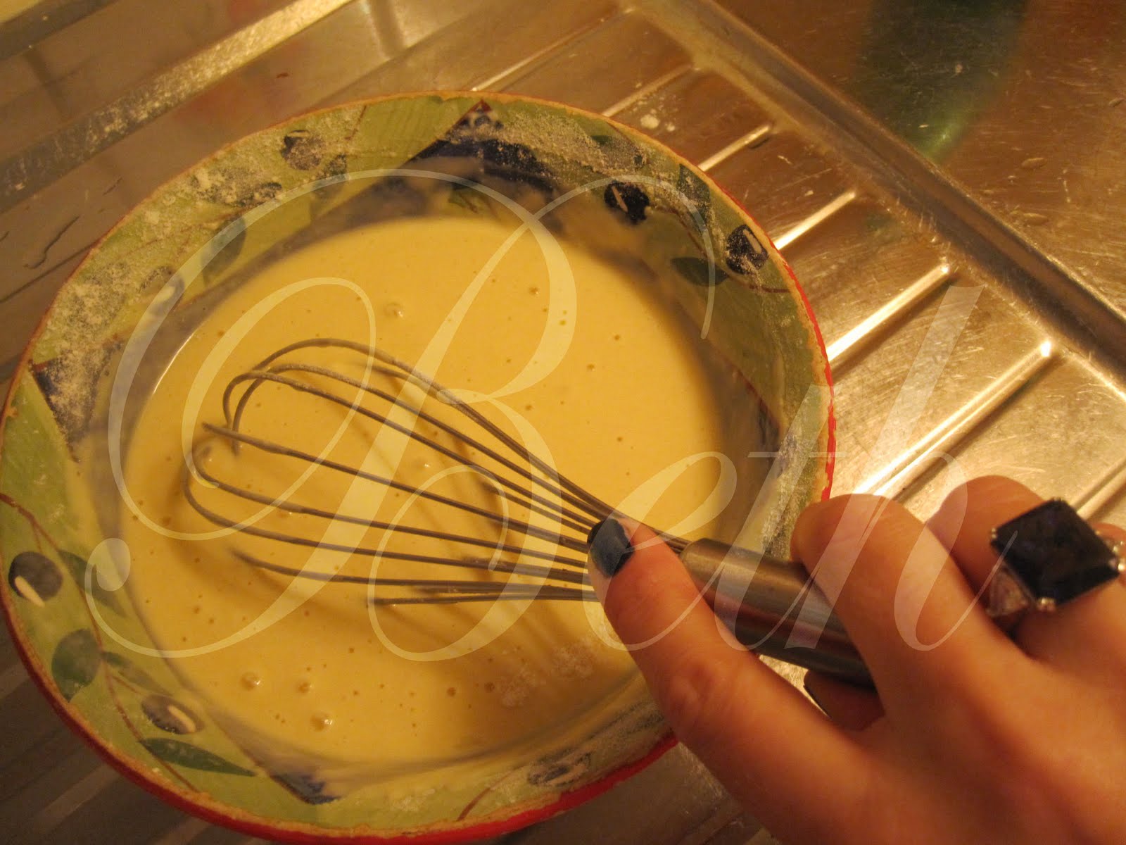 Entretanto, prepare um polme com a farinha, os ovos, a àgua com gàs, sal e pimenta.