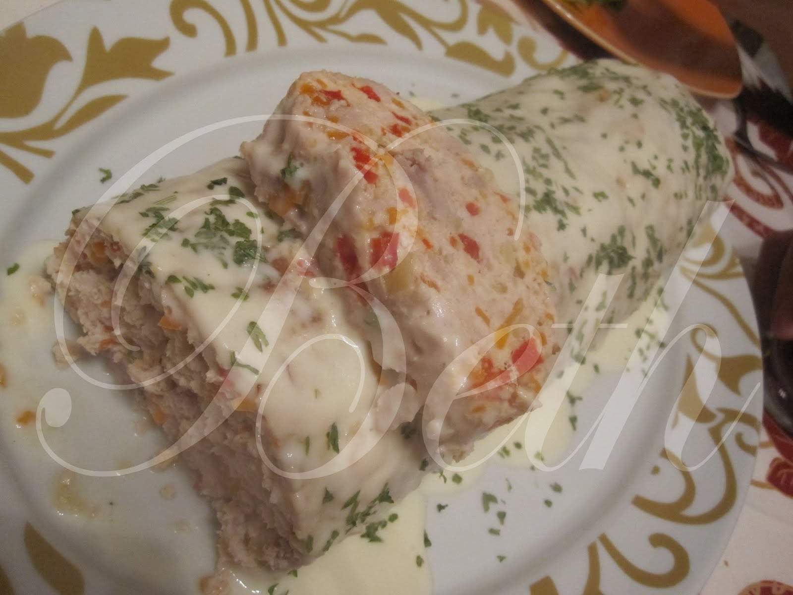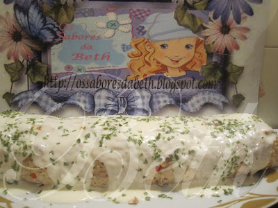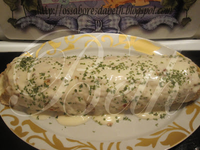 Passado este tempo, retire do forno e deixe arrefecer um pouco, retire o papel de aluminio e regue com o molho Béchamel Parmalat, previamente aquecido e ao qual, adicionou uma colher de sopa de queijo creme.