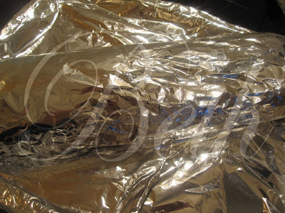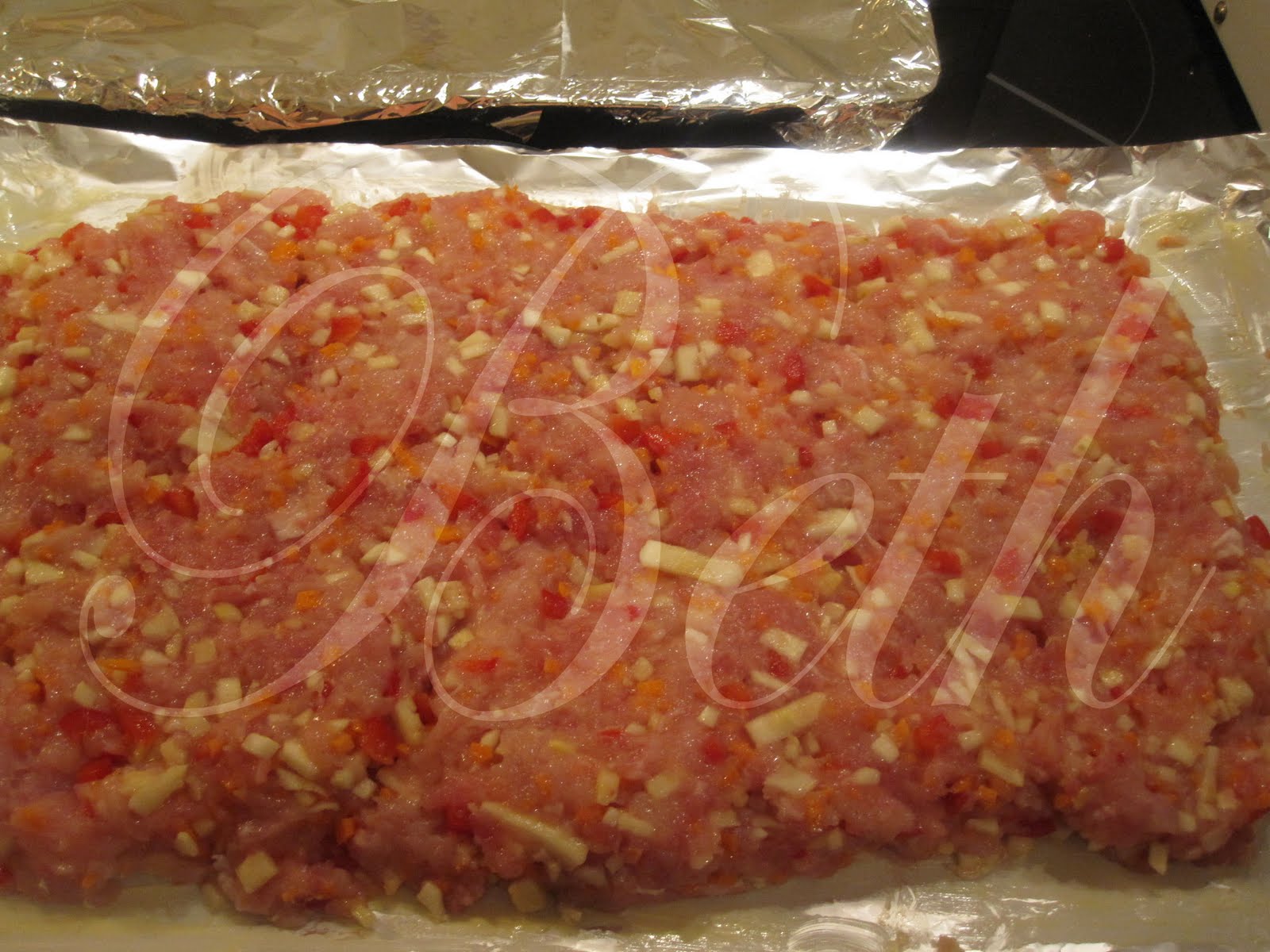 Barrez une feuille de papier aluminium avec le beurre et étalez la viande (voir photo).
