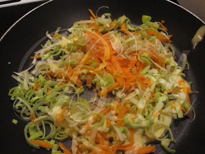 Portez une poêle au feu avec 1 cuillère de beurre et faites revenir le poireau et la carottes environ 5 minutes juste le temps de attendrir les légumes, retirez et réserver.