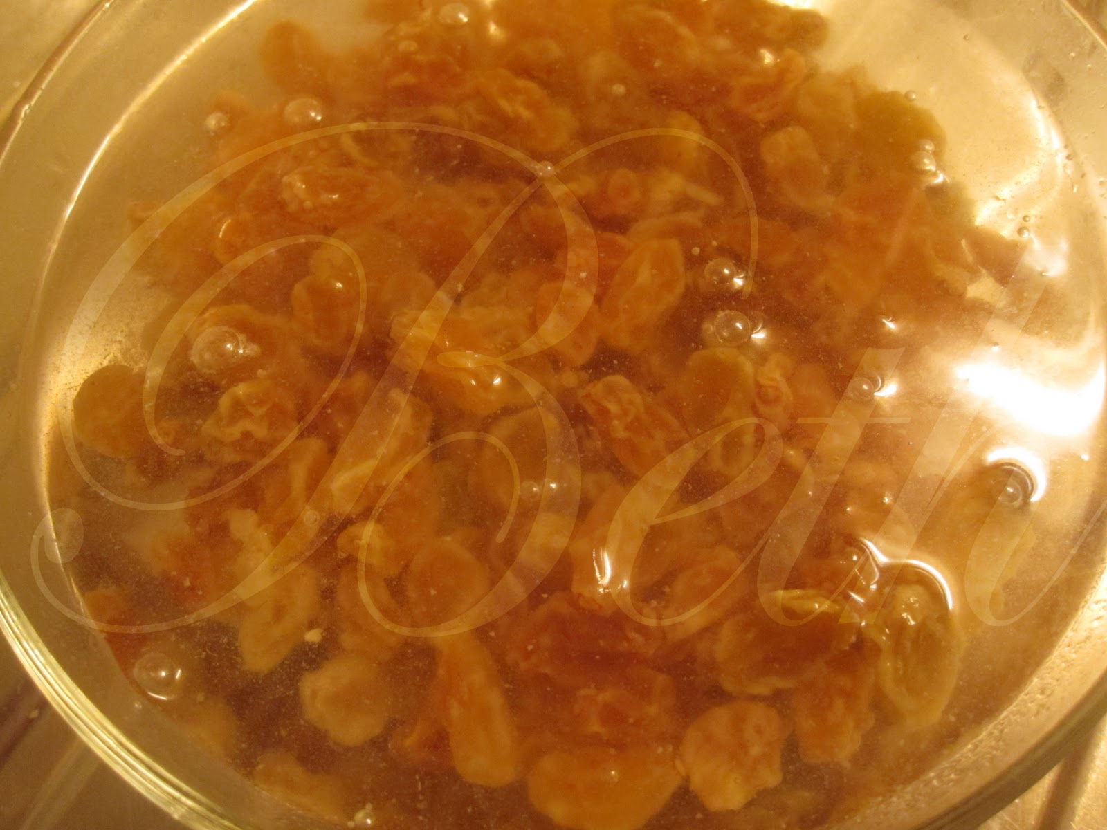 Coloque as uvas passas num recipiente com àgua morna e reserve.