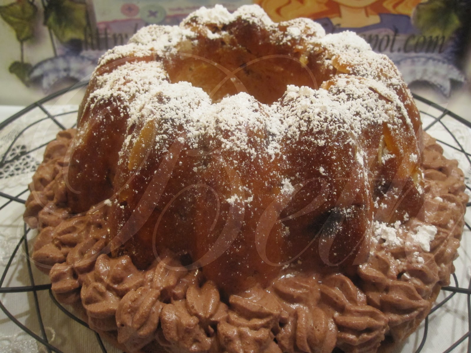 Na parte baixa do kourglof eu realizei um chantilly de chocolate para decorar.