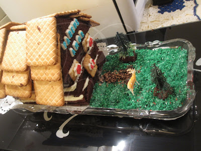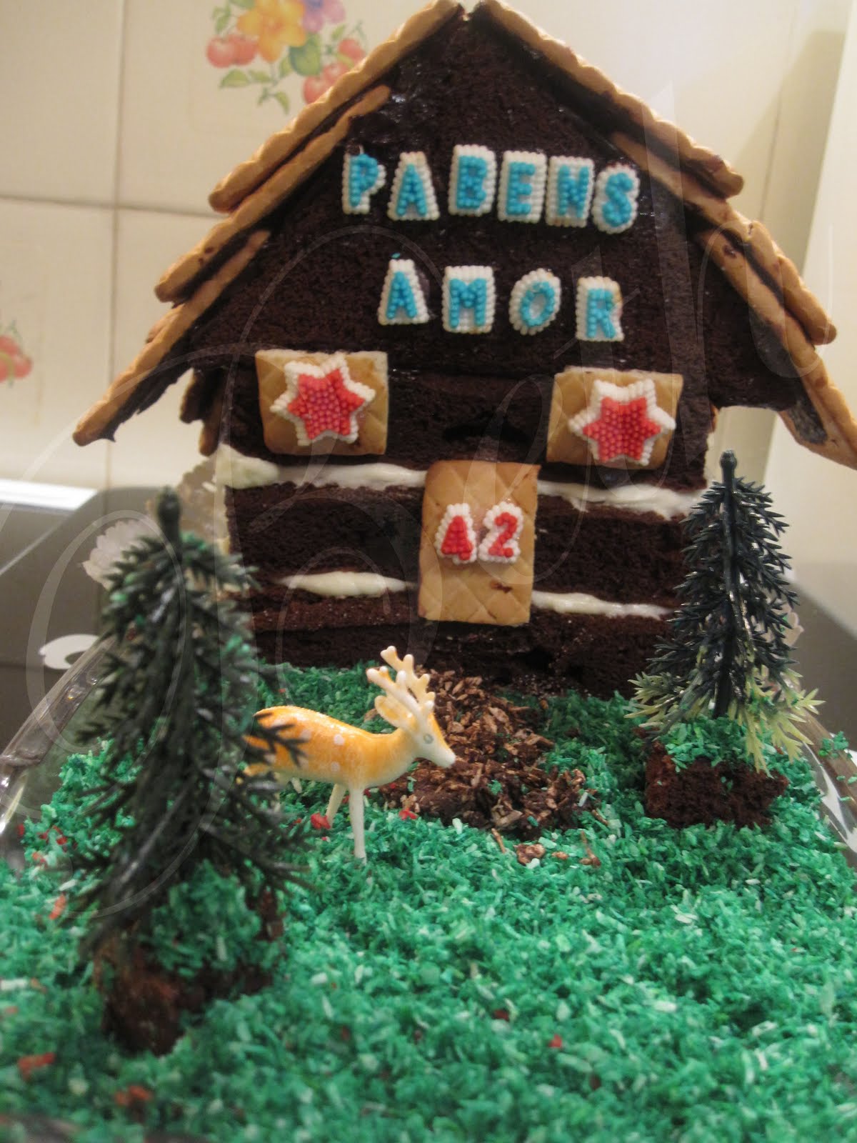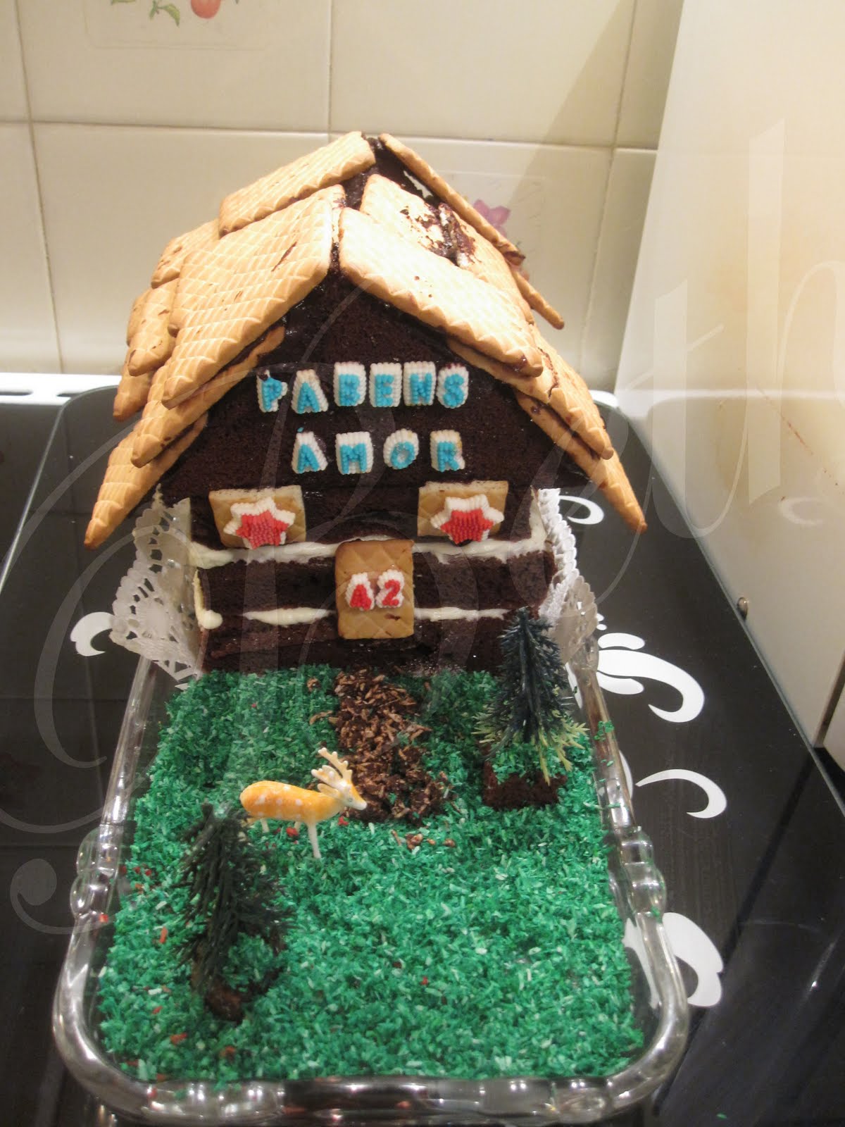 Como no dia dos anos do meu marido estàva de chegada de férias de Portugal, portanto não tive a oportunidade de lhe fazer um bolo, decidi lhe festejar os anos este fim de semana fazendo-lhe como bolo esta casinha com o tecto um pouco defeituoso, mas ficou muito delicioso!!!!! (desculpem o erro na palavra PARABENS, so dei conta depois de estarem as fotos feitas e o bolo comido, ninguem se apercebeu, deculpem)....