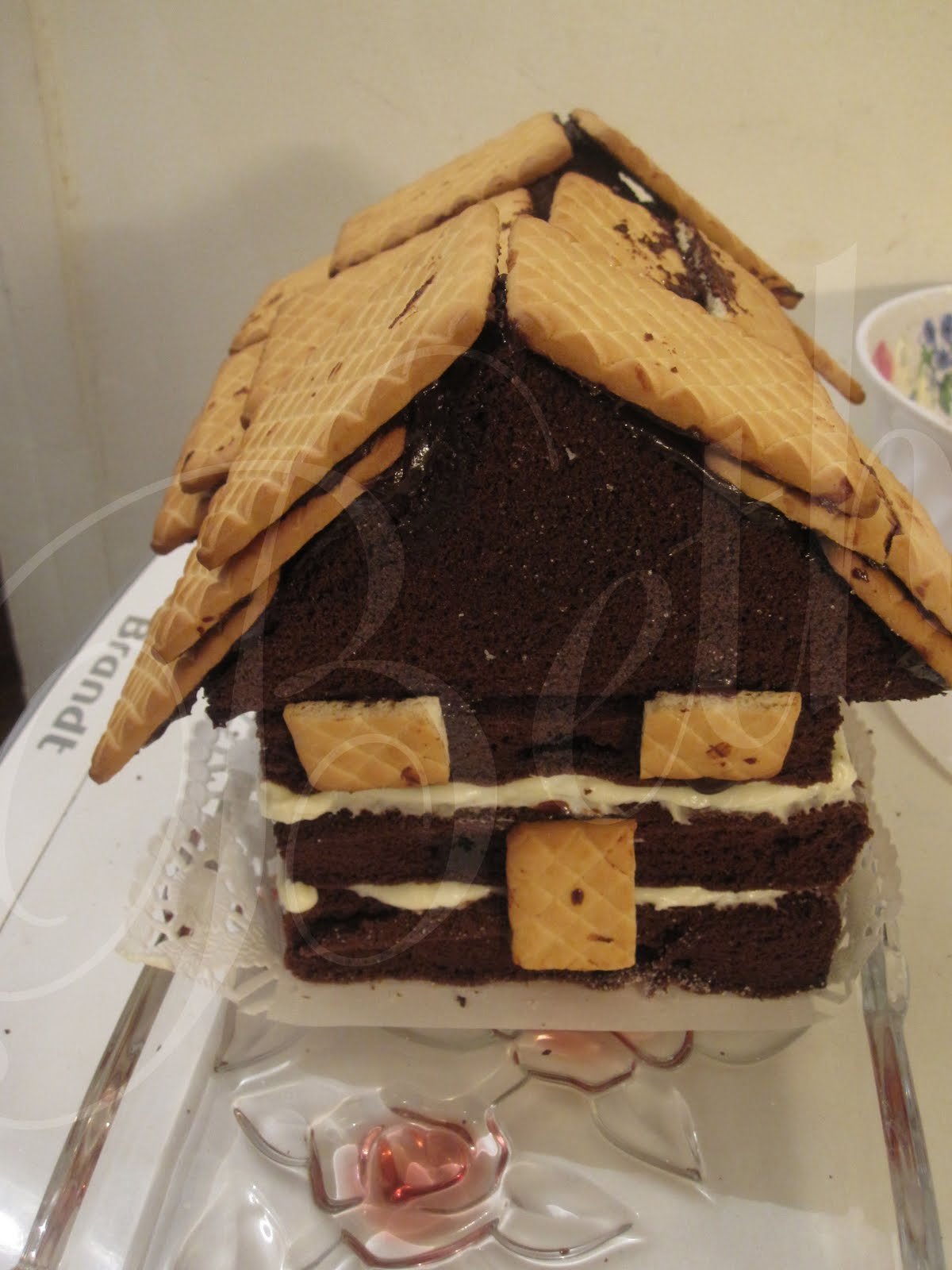 utilize o chocolate nas partes interiores do telhado para ficar bem colado....