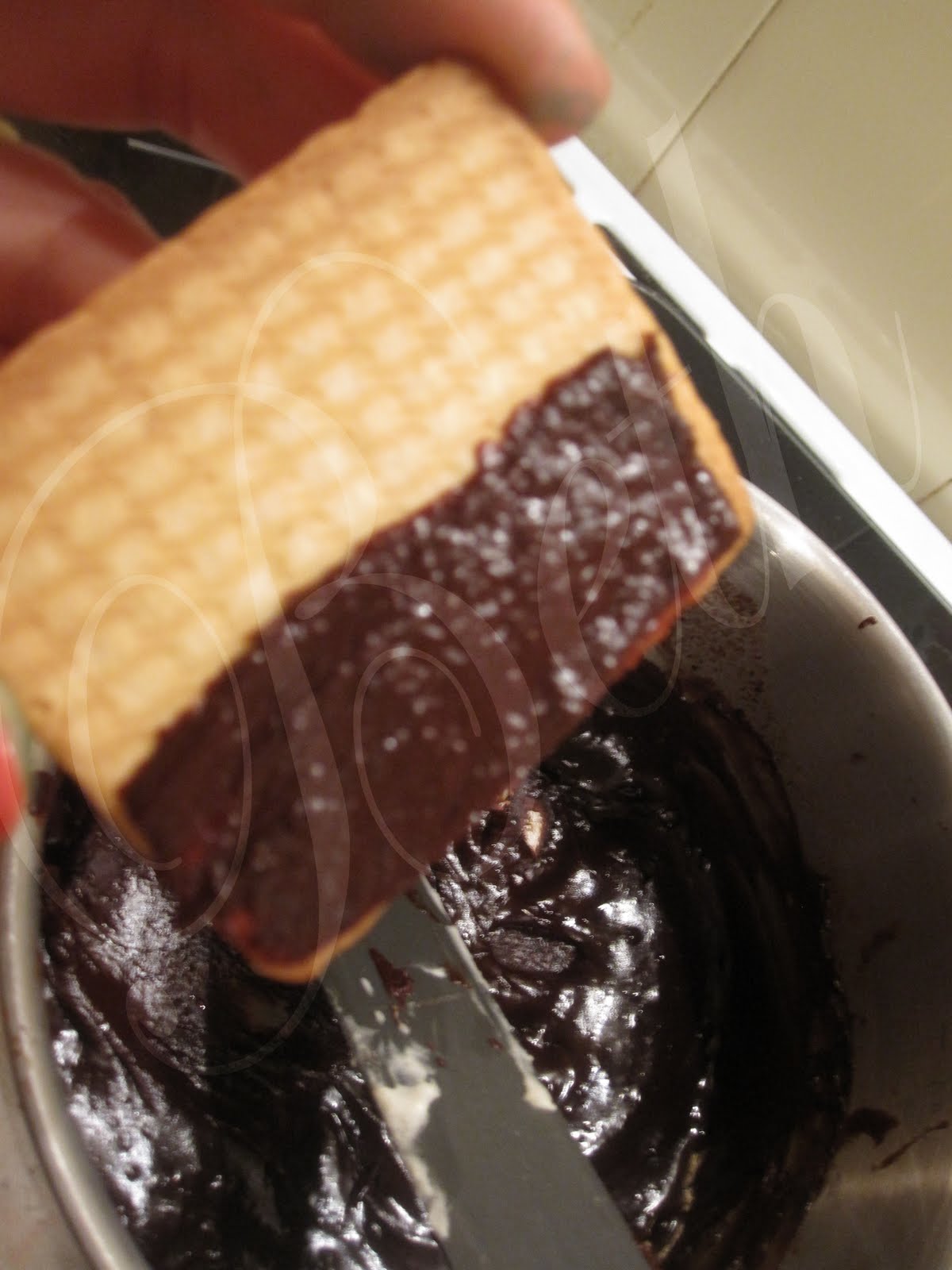 coloque tambem o chocolate nas bolachas para ficarem bem coladas.....