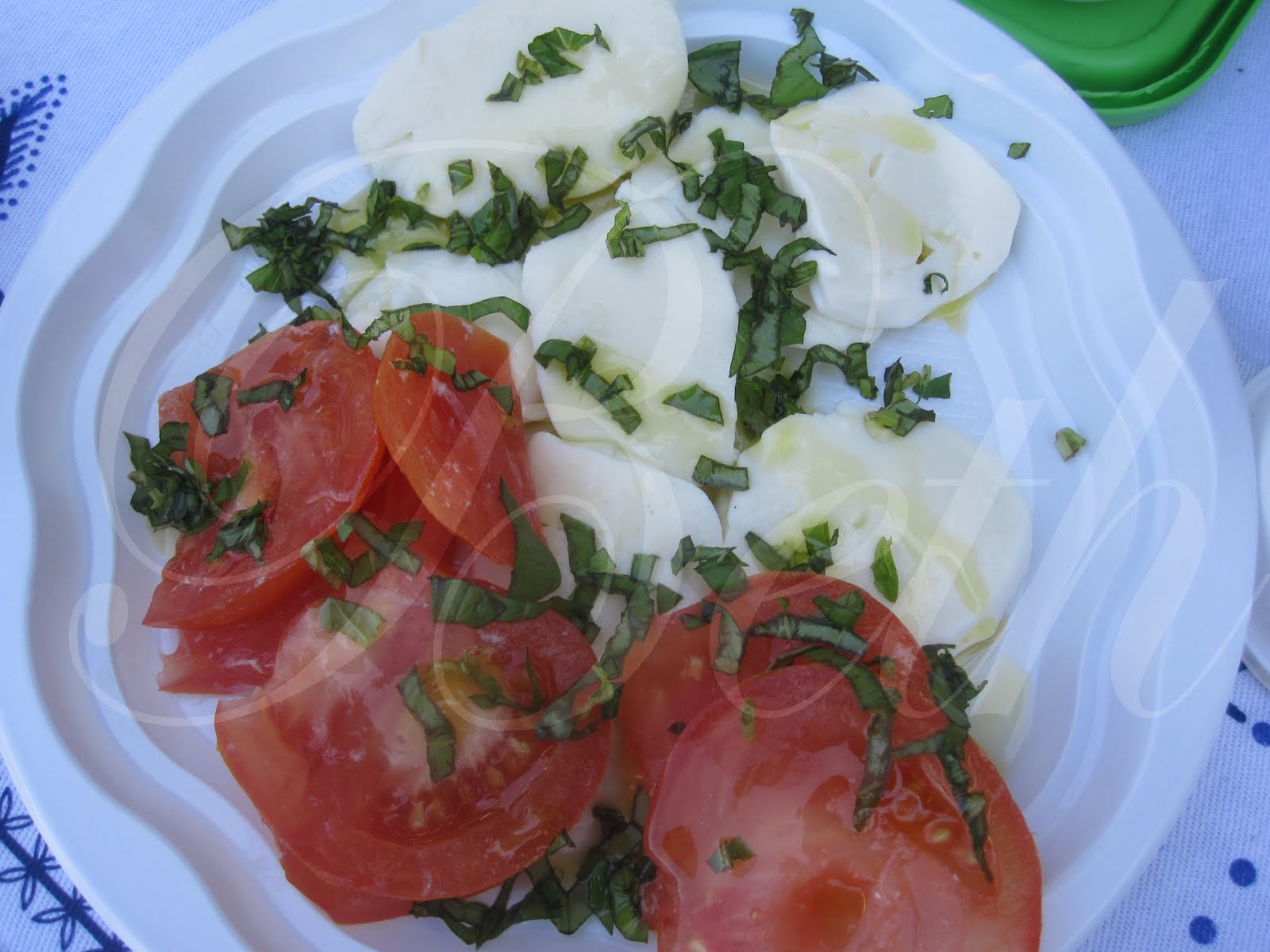 uma saladinha de tomate mozzarella como entrada, bem fresquinha.......