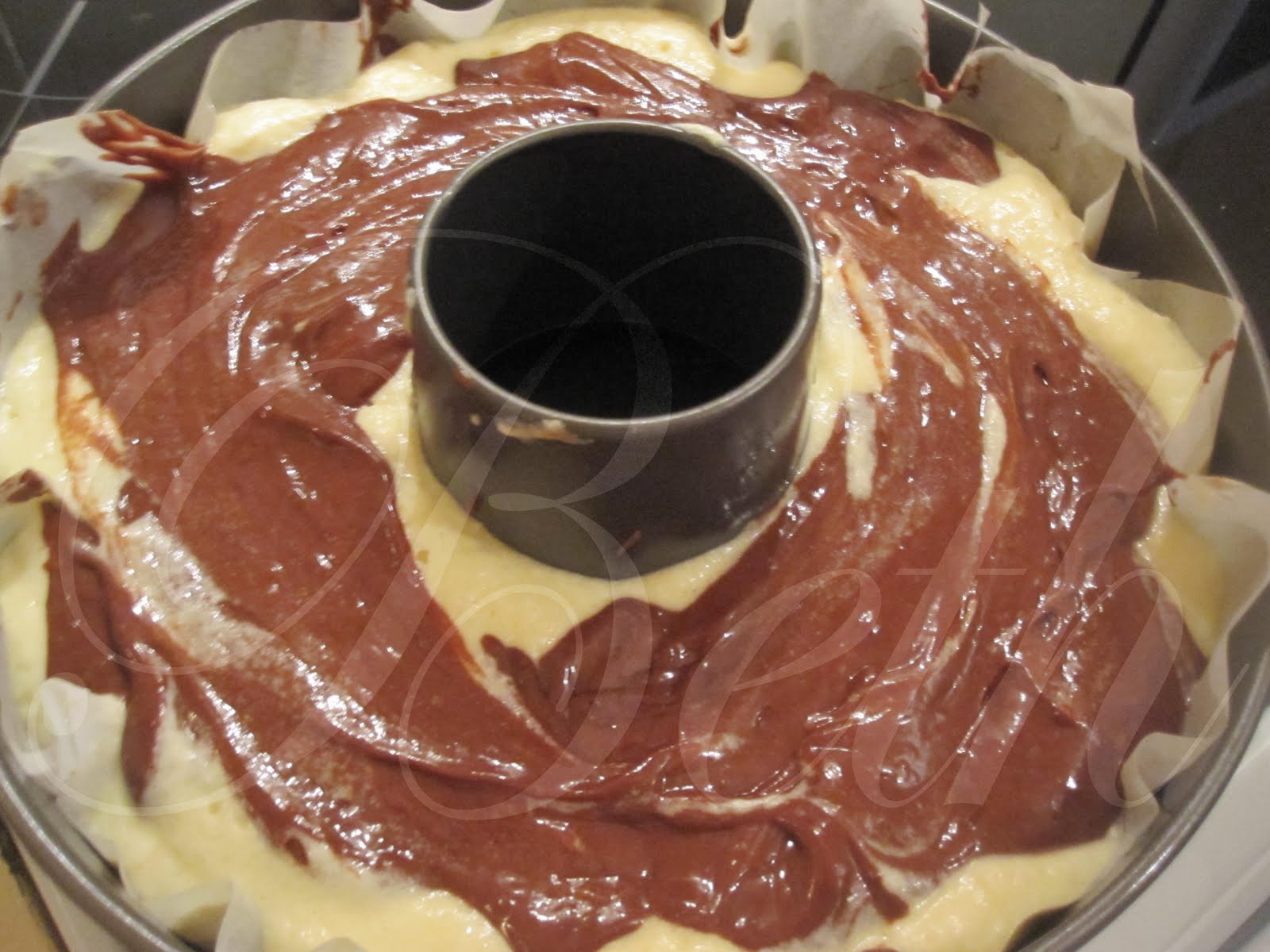Verta na forma em primeiro metade da massa chocolate, seguindo da preparação que contem a ricotta e alise bem com uma espatula salazar e por ultimo verta a restante massa de chocolate, alise bem e leve ao forno a cozer durante 50 minutos, ao fim do tempo o bolo estarà grandinho, mas vai recair ao arrefecer (é normal).