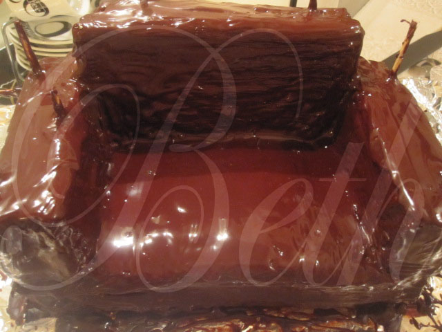 A receita deste bolo é muito simples, são duas bases de pão de lo forradas com creme pasteleiro, uma vez o sofa montado é so barrar com chocolate.