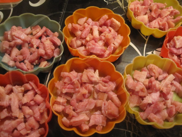 coloque no fundo das formas o bacon.....