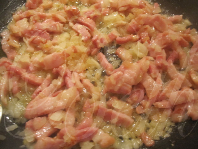 Entretanto coloque uma sertã no lume com um pouco de margarina verta dentro as cebolas picadas, quando estas comesarem a ficaram cozidas acrescente o ardons e deixe cozinhar durante 5 minutos, retire do lume e reserve.