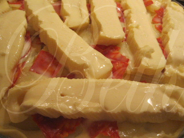 Verta esta preparação sobre a tarte e leve ao forno a cozer durante 40 minutos a 180°C.