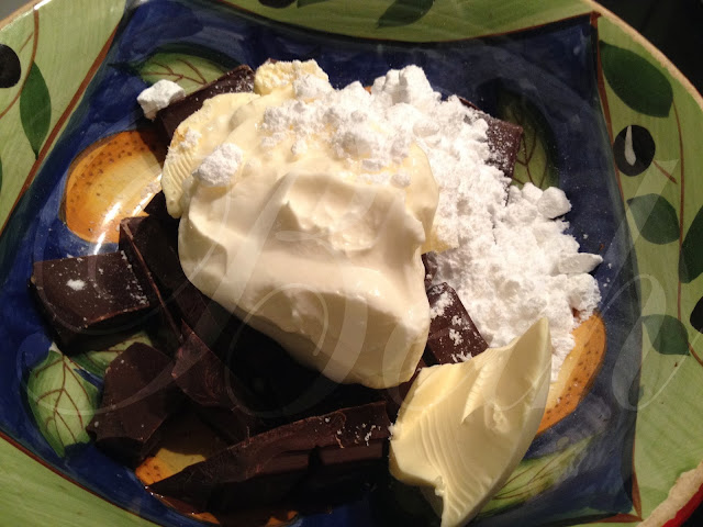 derreta o chocolate juntamente com a margarina, creme fraîche e açucar em po....