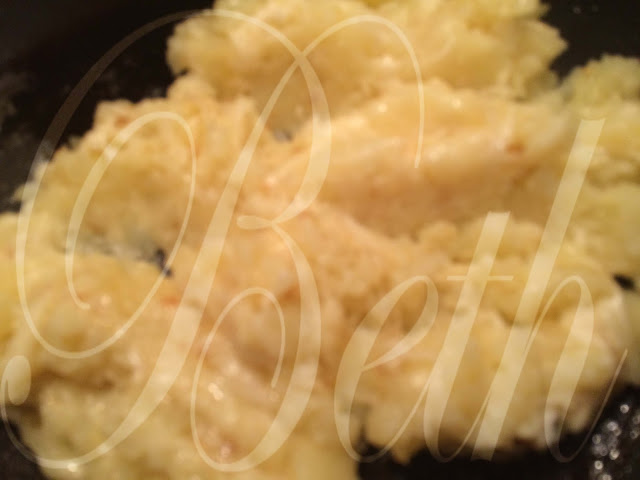 Ajouter la chair évidée des pommes de terre, fromage râpé, le sel et le poivre dans la poêle et bien mélanger.