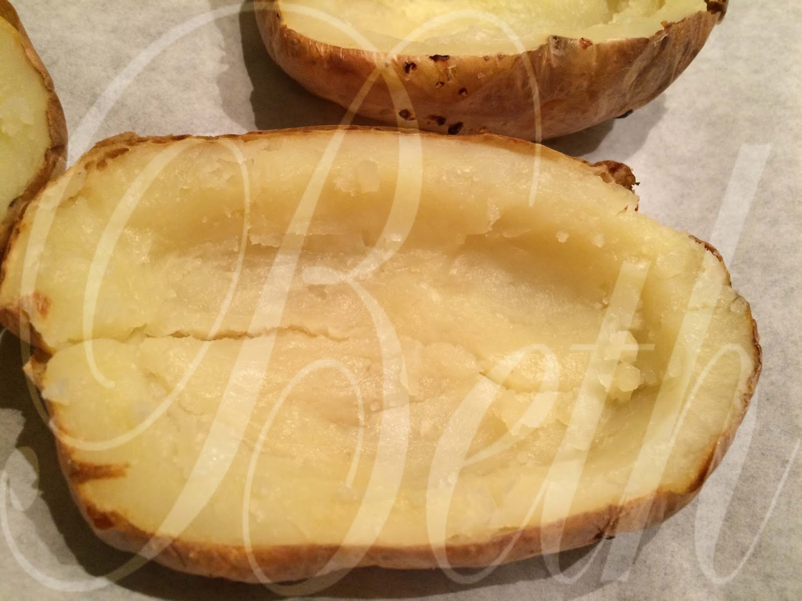 Percez les pommes de terre avec une fourchette et mettez-les dans la grille du four pendant 30-40 minutes jusqu'à ce que doux.
