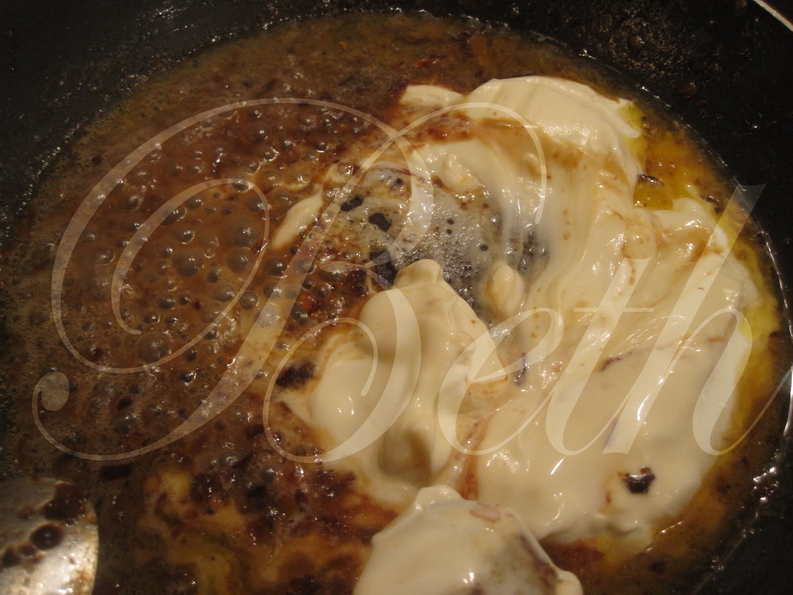retire-as para um pratinho e verta na sertã a creme fraîche, tempere de sal e pimenta envolva tudo muito bem até obeterem um creme a seu gosto e reserve....