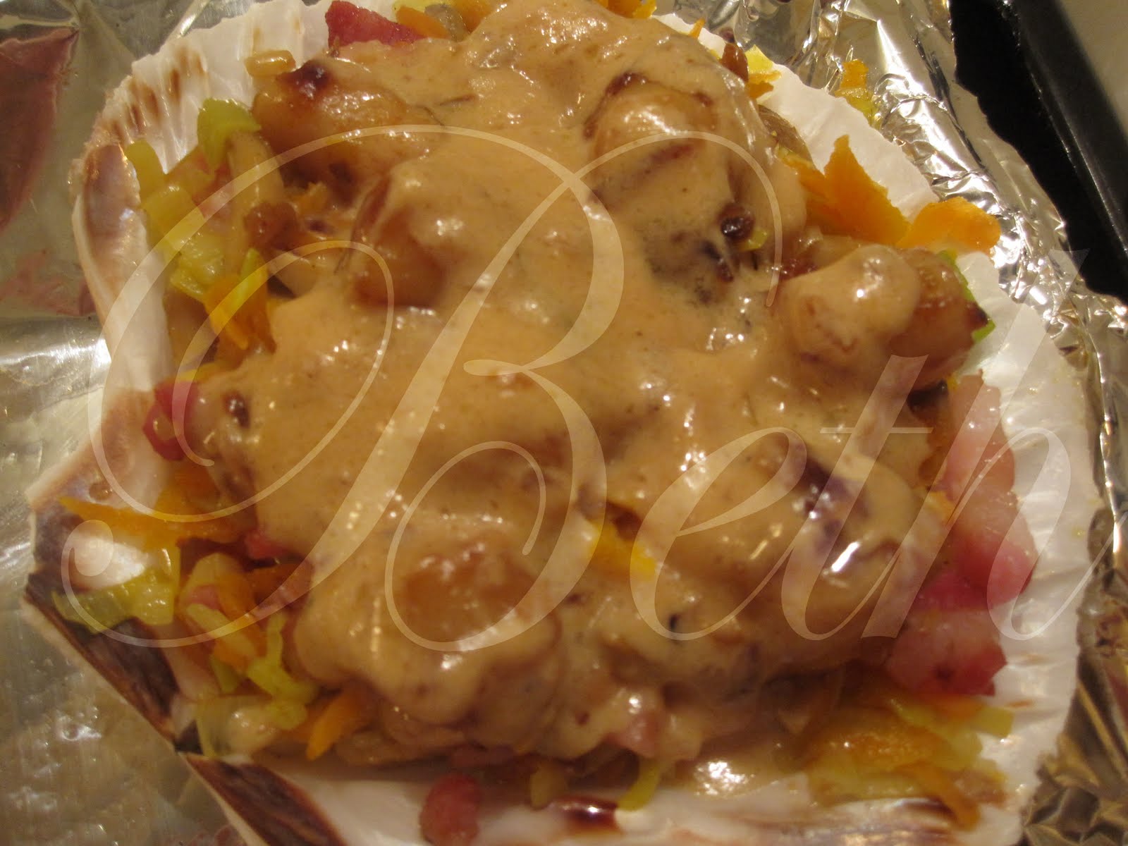 Verta este creme sobre as vieiras colocadas nas conchas.