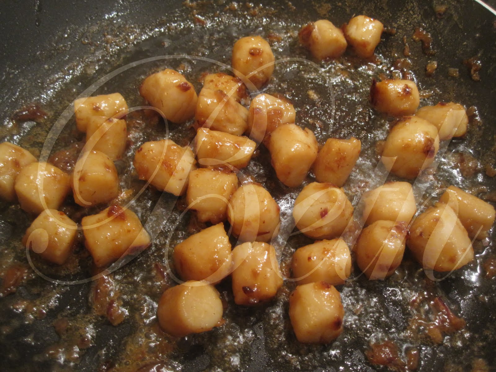na sertã onde colocou a cebola vermelha a dourar adicione as vieiras e deixe dourarem (como aqui na foto).....
